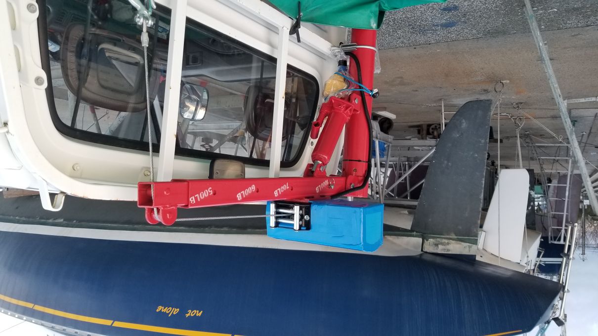 このクレーには手動ウインチが付いていたが、これを回すのにも労力が必要で、せっかく機械に頼るならウインチを電動にした。