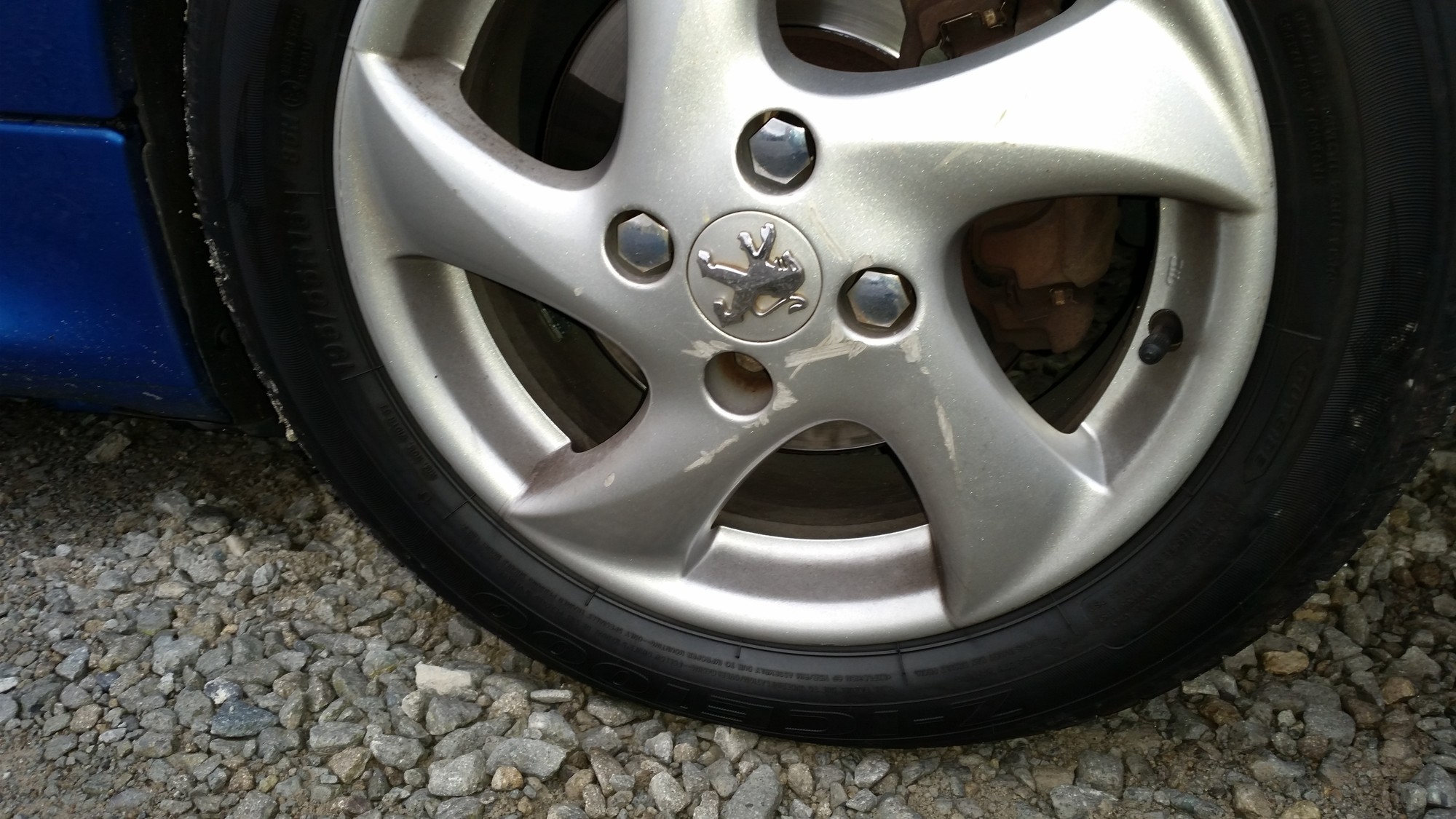 新年早々、ヨットの桟橋に206CCで乗り付けたところ「アルタイア」のオーナーがホイールを見て、「アレ!ボルトキャップが無くなってるよ!」ってご忠告を受け、見てみると、いつの間にやら飛んじまってる!