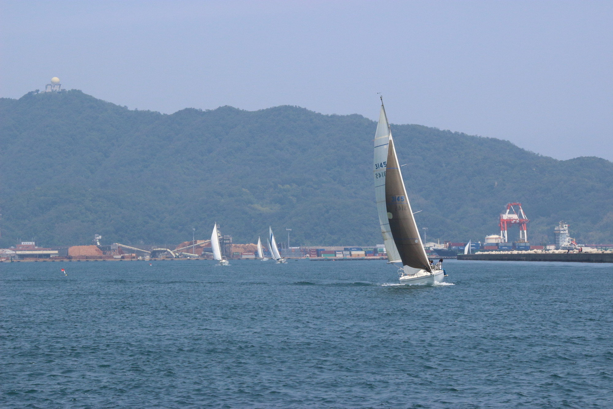 一文字防波堤を回航後ポートクローズHで、3番手でスタート!