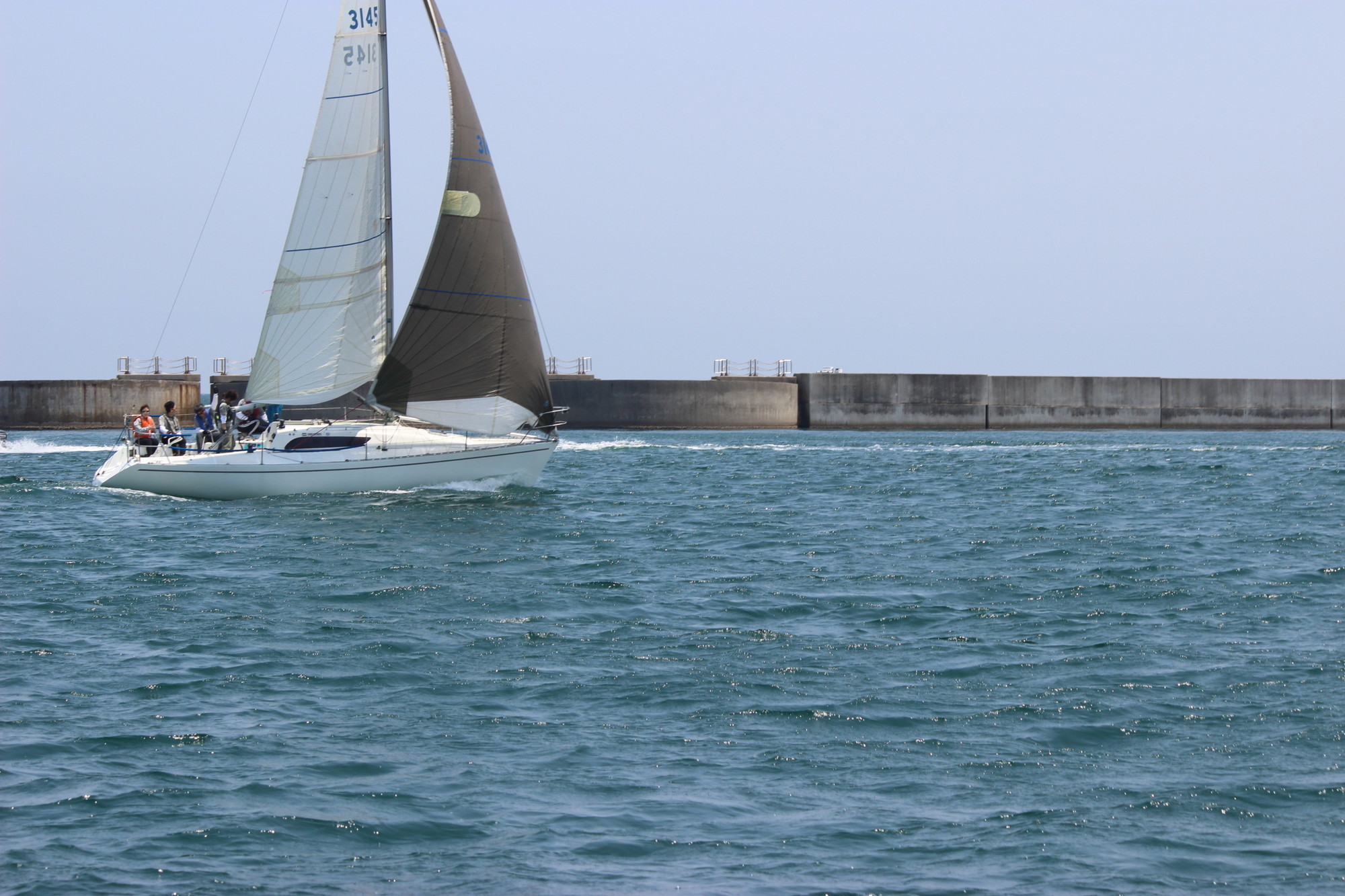 レース運営委員の方から、今回はマークを打っていないので、急遽一文字防波堤を2周する事になった。