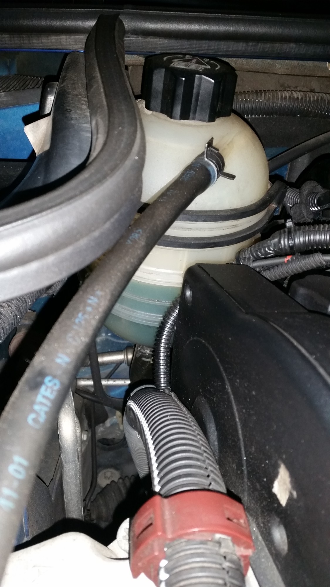 ここでエンジンは直ぐ停止させずに暫くエンジンを回したままボンネットを開け、冷却水のリザーブタンクを見て、冷却水が減っているか点検する。