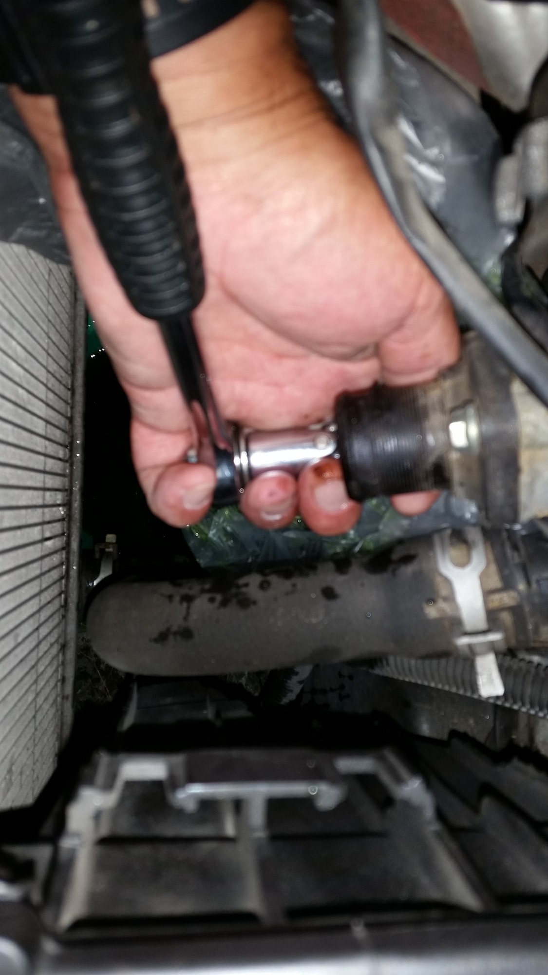 これは、サーモスタットが開いていないか、ウオーターポンプが回っていないかのどちらかだ!