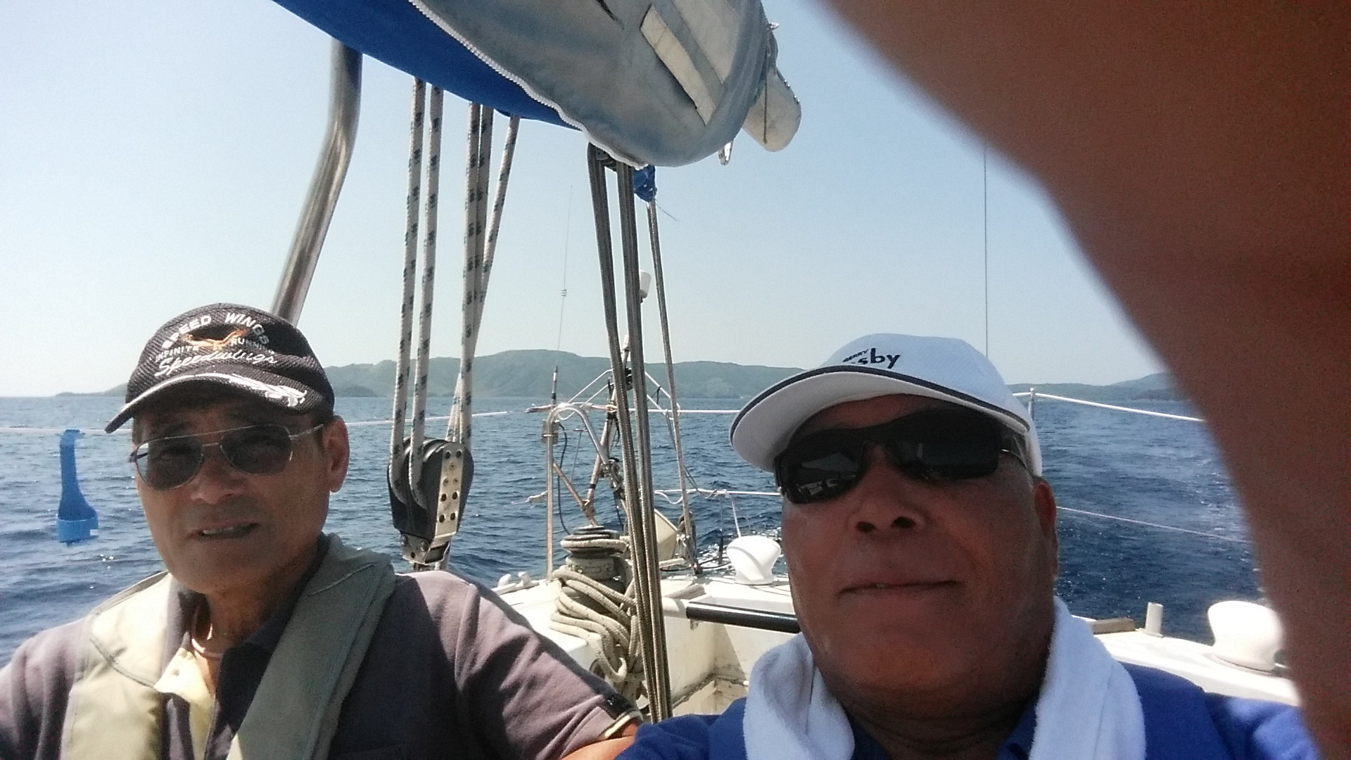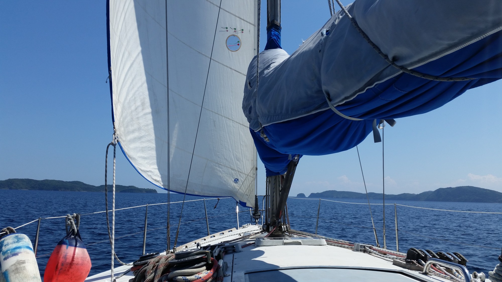 途中木路ヶ崎灯台付近で海上保安庁の巡視船とすれ違い、順調にNo2ジブだけの機帆走!