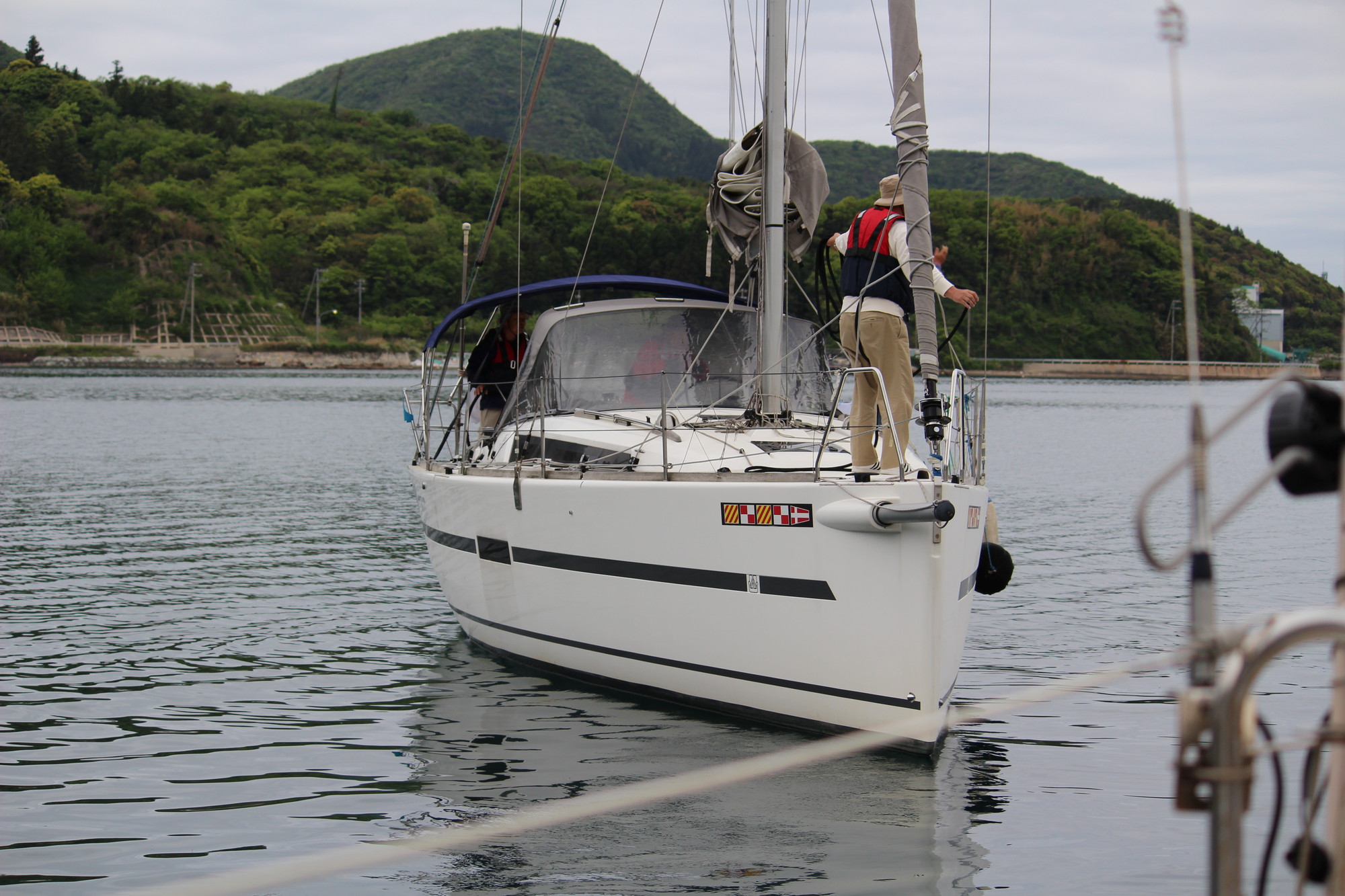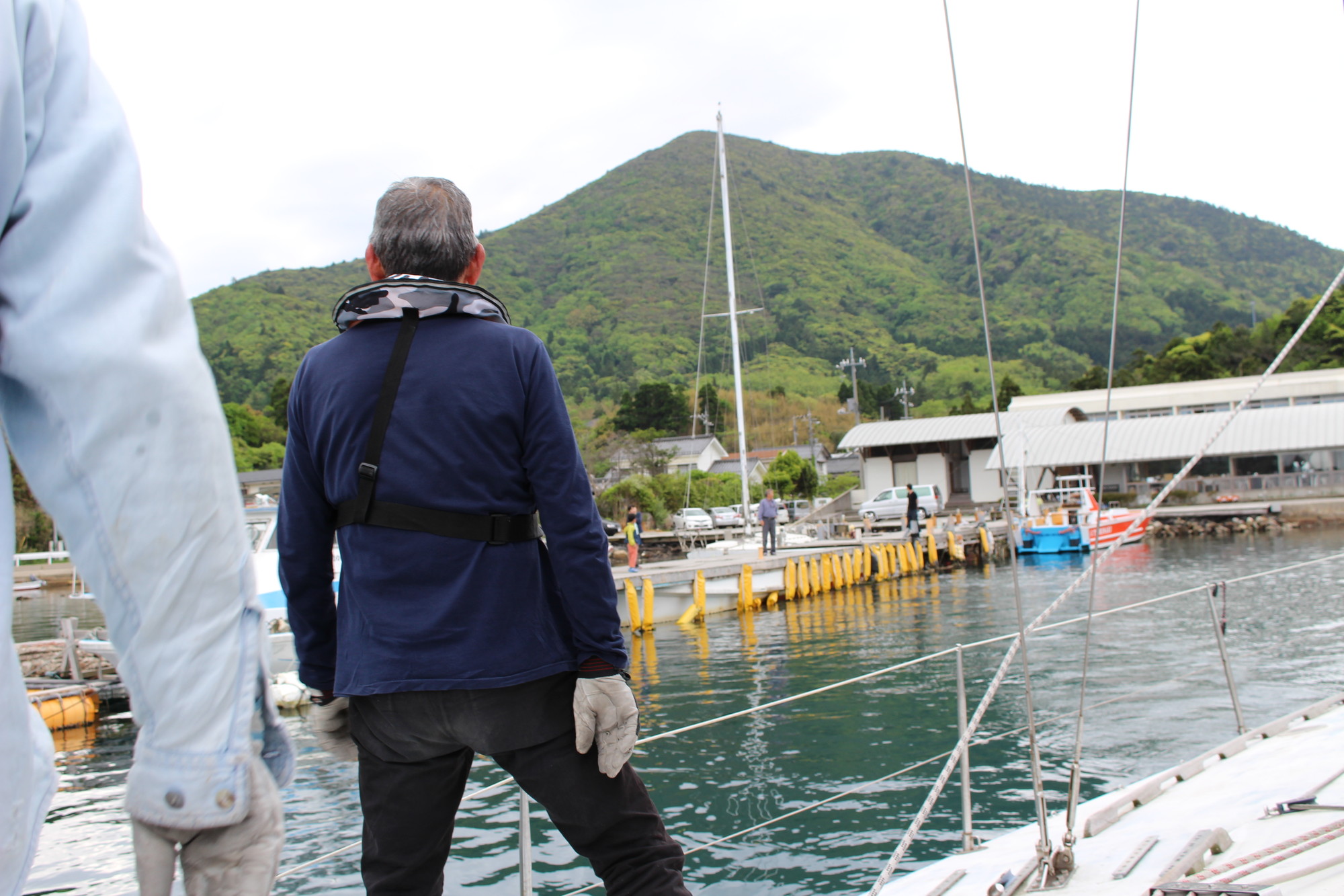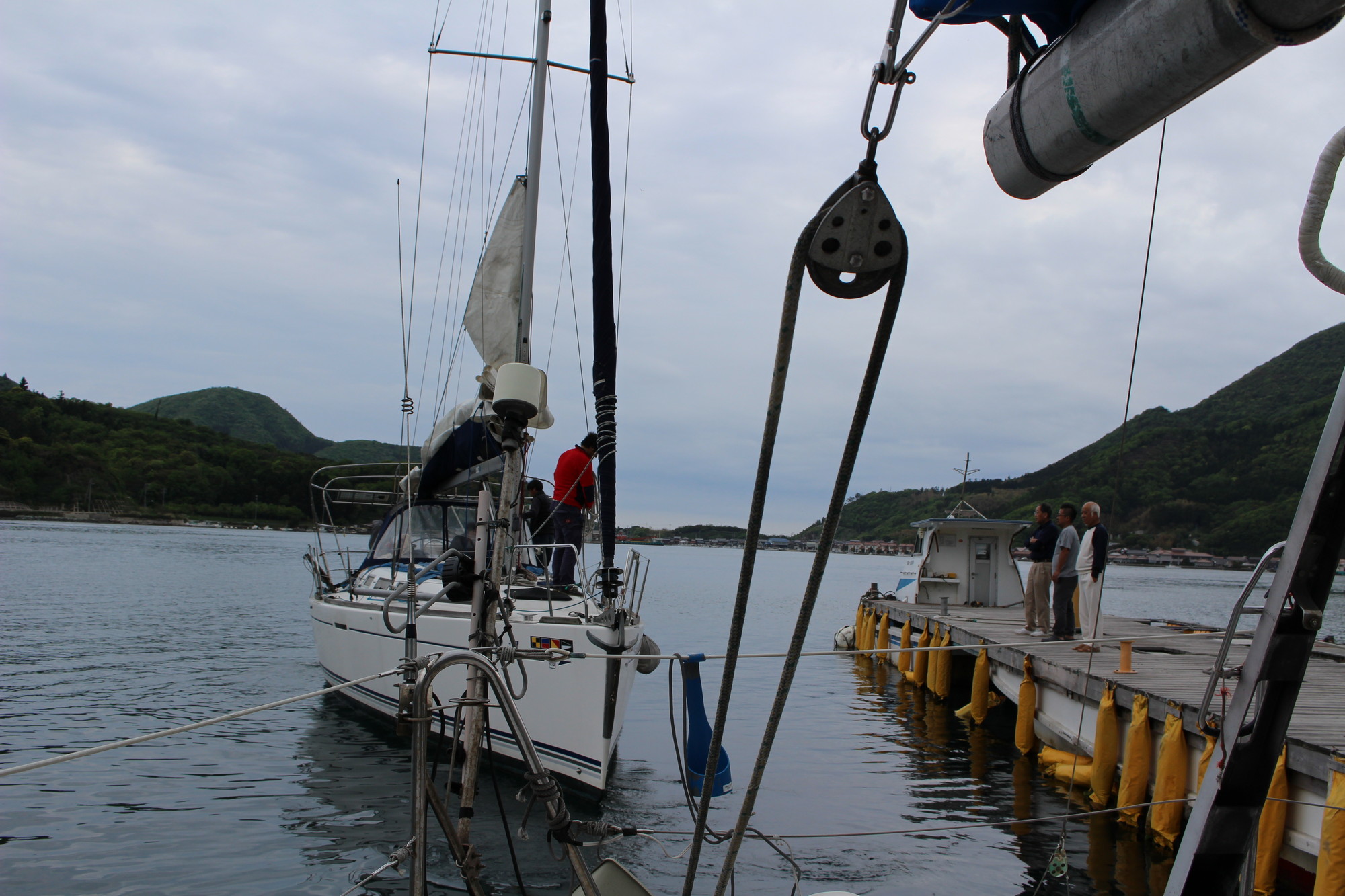 美田湾内で、メインセイルを降ろし、鶴丸桟橋に無事接岸!