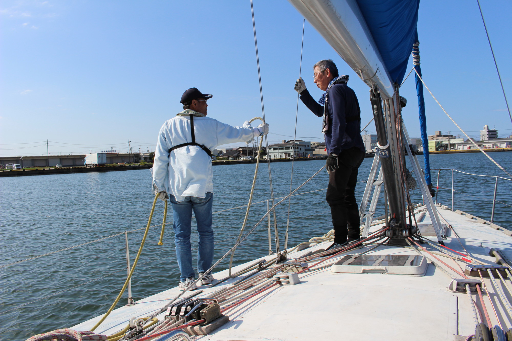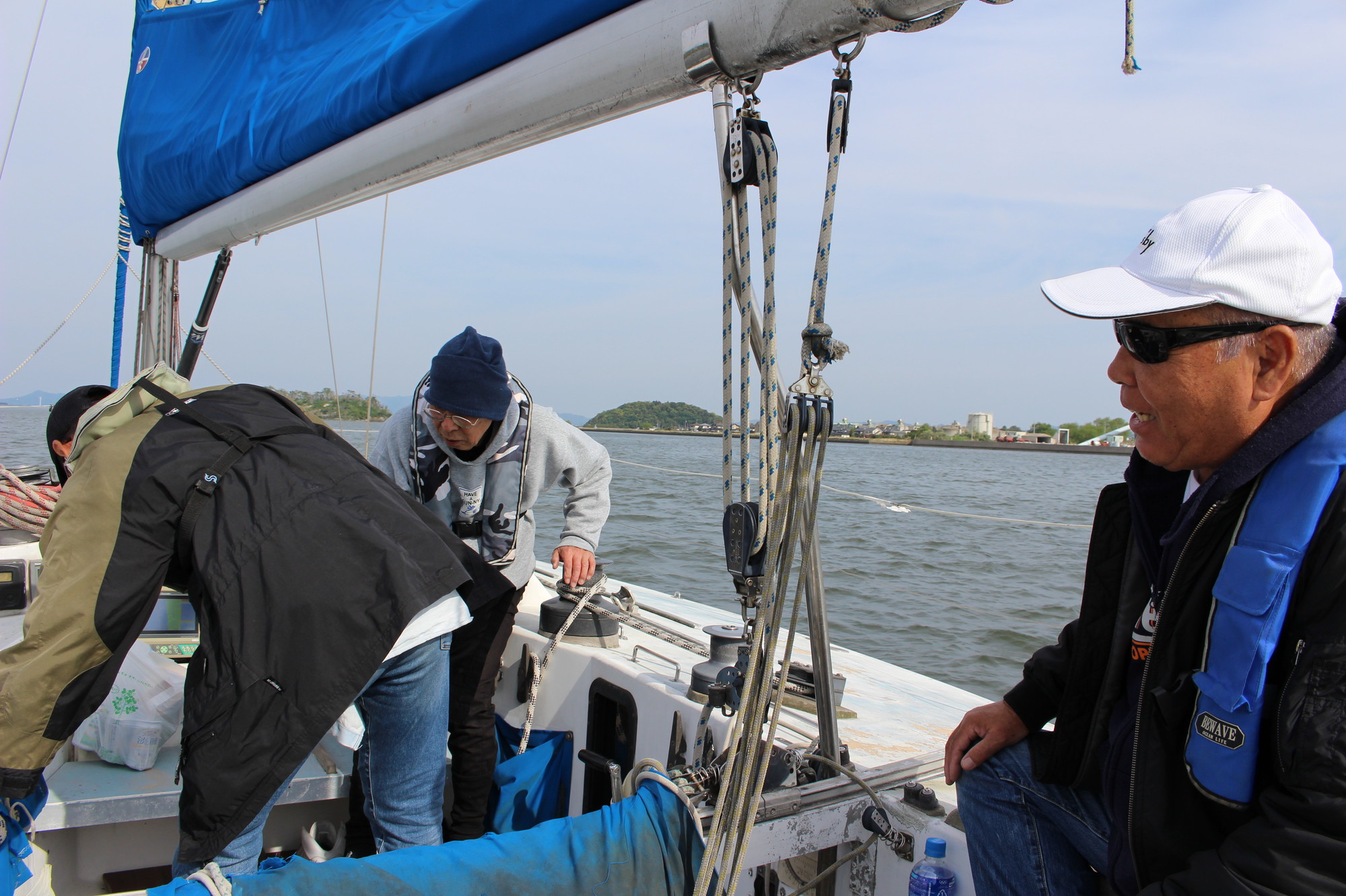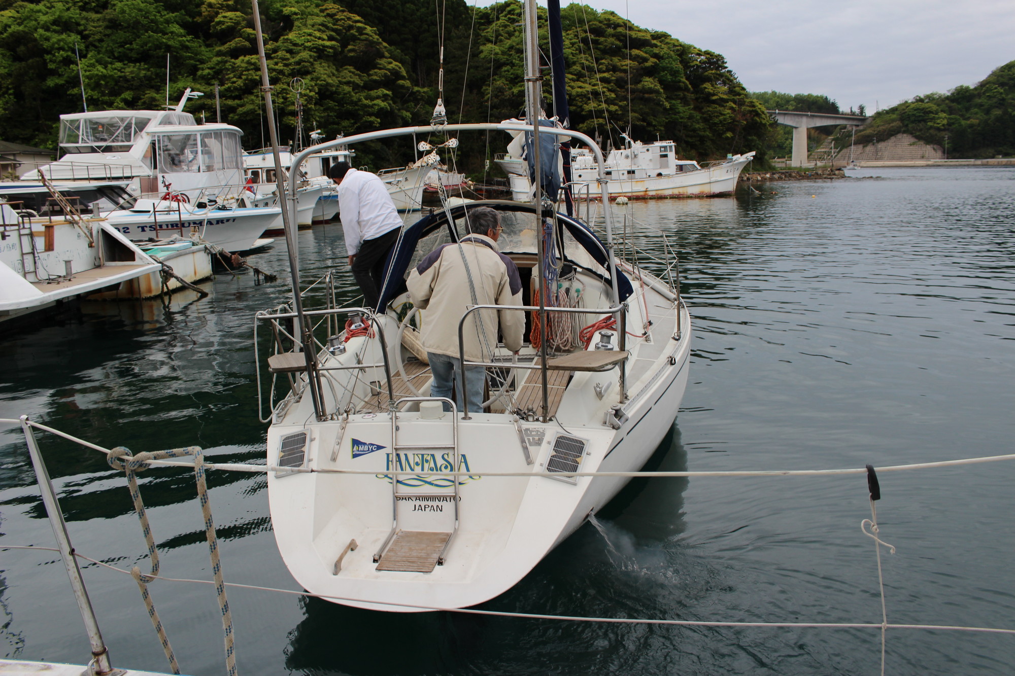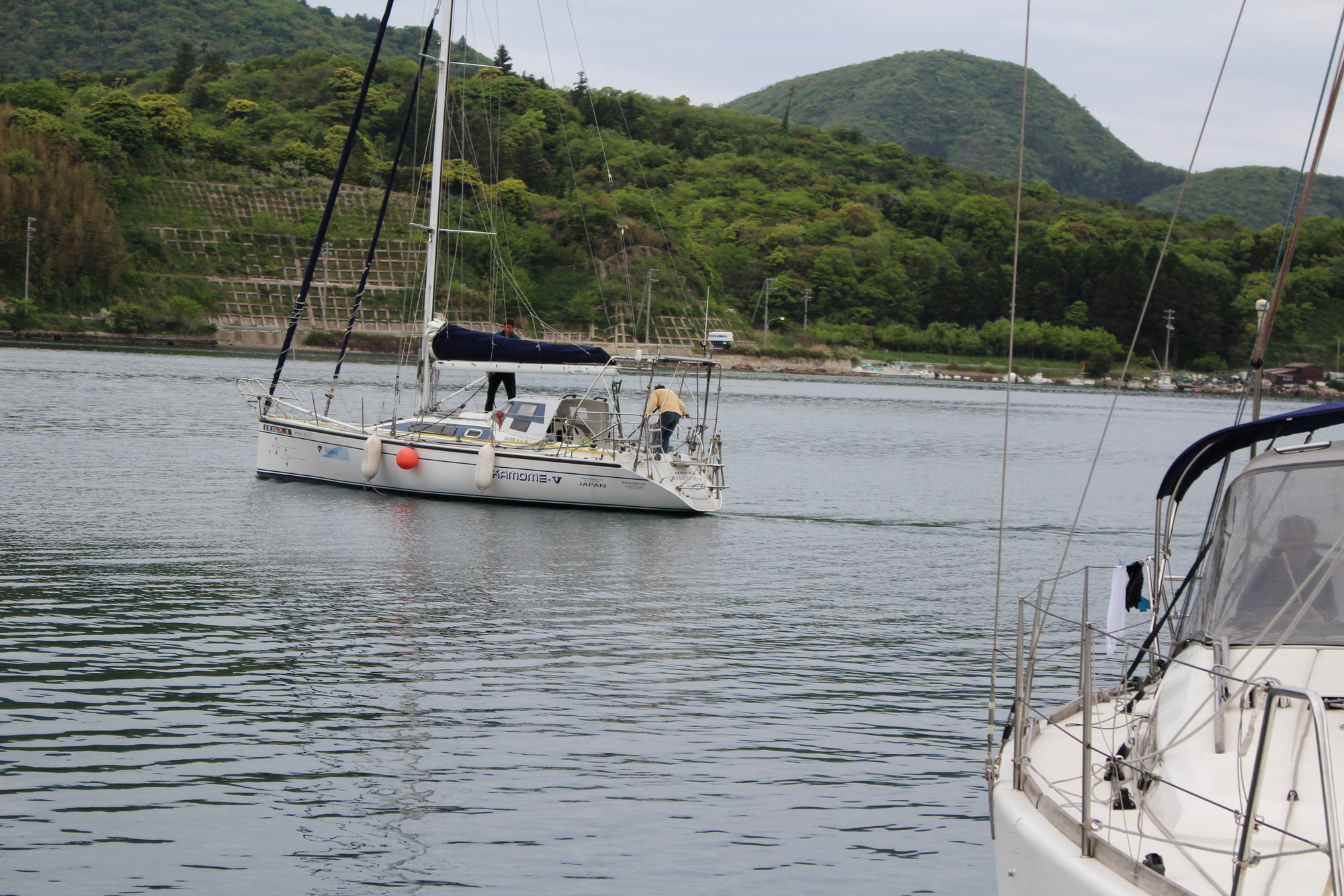 美田湾内で、メインセイルを降ろし、鶴丸桟橋に無事接岸!
