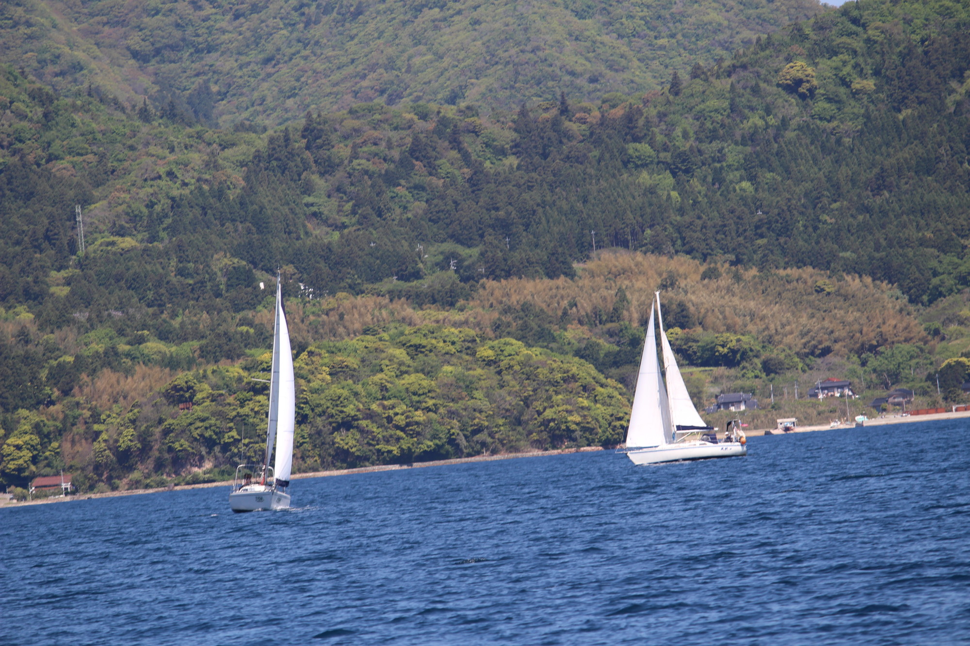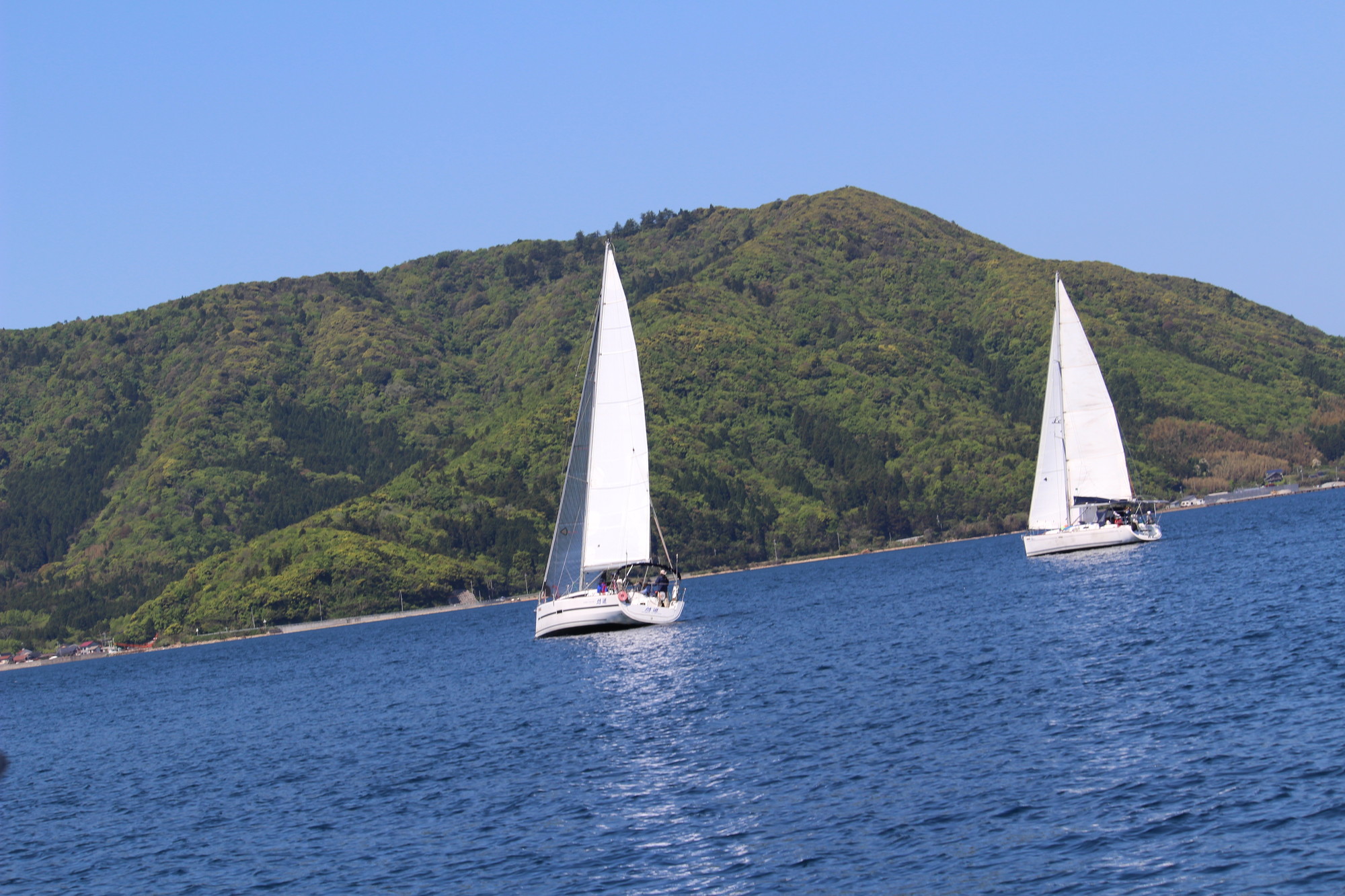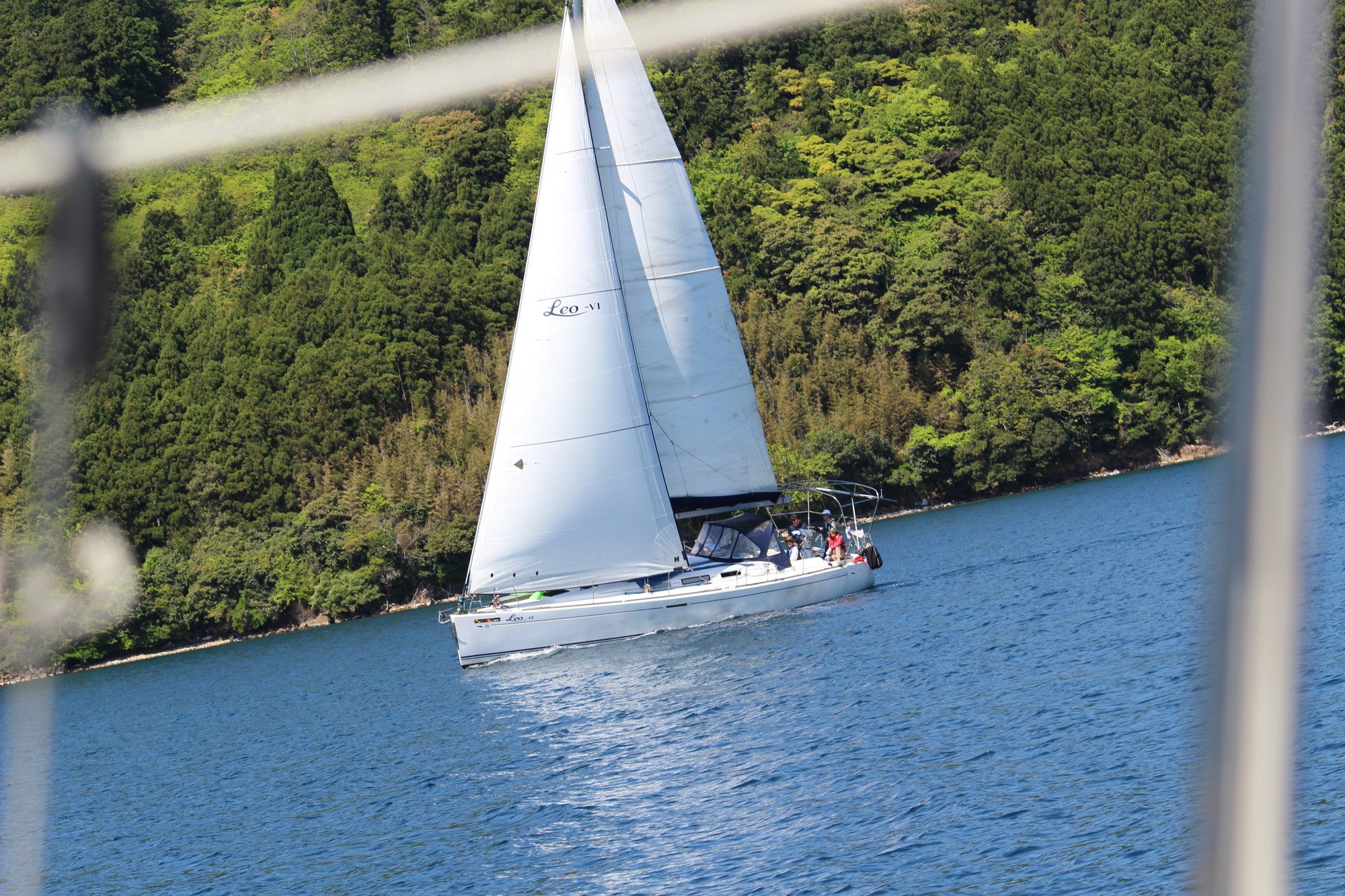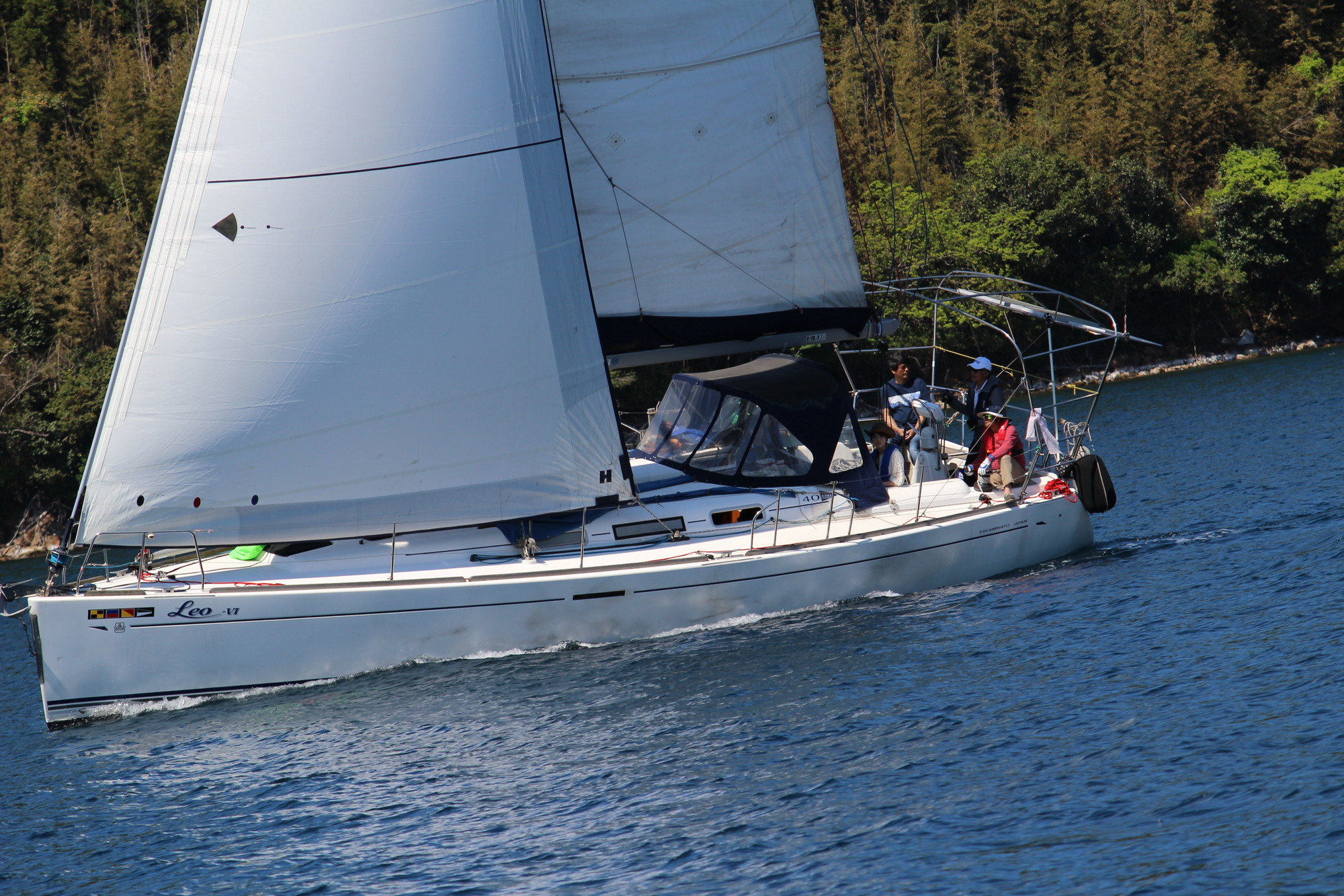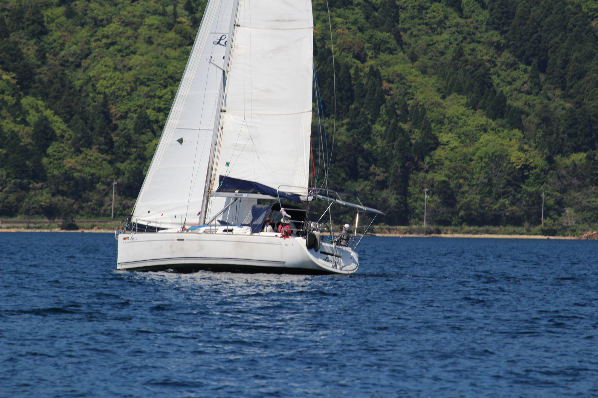 浦郷湾深くゼネカーで入り、ジャイブの為ジブを展開し、ゼネカーをダウン!