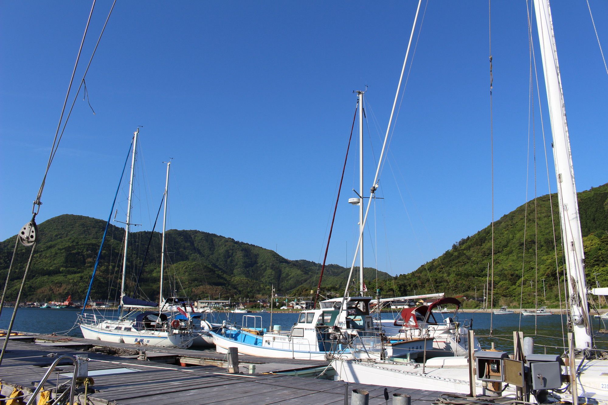 以後は流れ藻に注意を払いながら、機帆走して17:30頃無事隠岐ノ島海士町菱浦港に到着。
