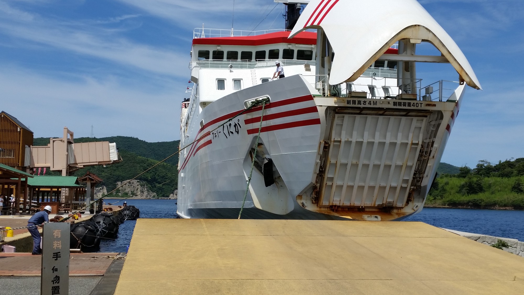 昼食も近いので隠岐汽船乗り場内にある食堂で昼食をとり、そろそろ境港からヨットが到着する頃と思って、岸壁に行き様子を見て回ると、既に一隻ヨットが着いていた。