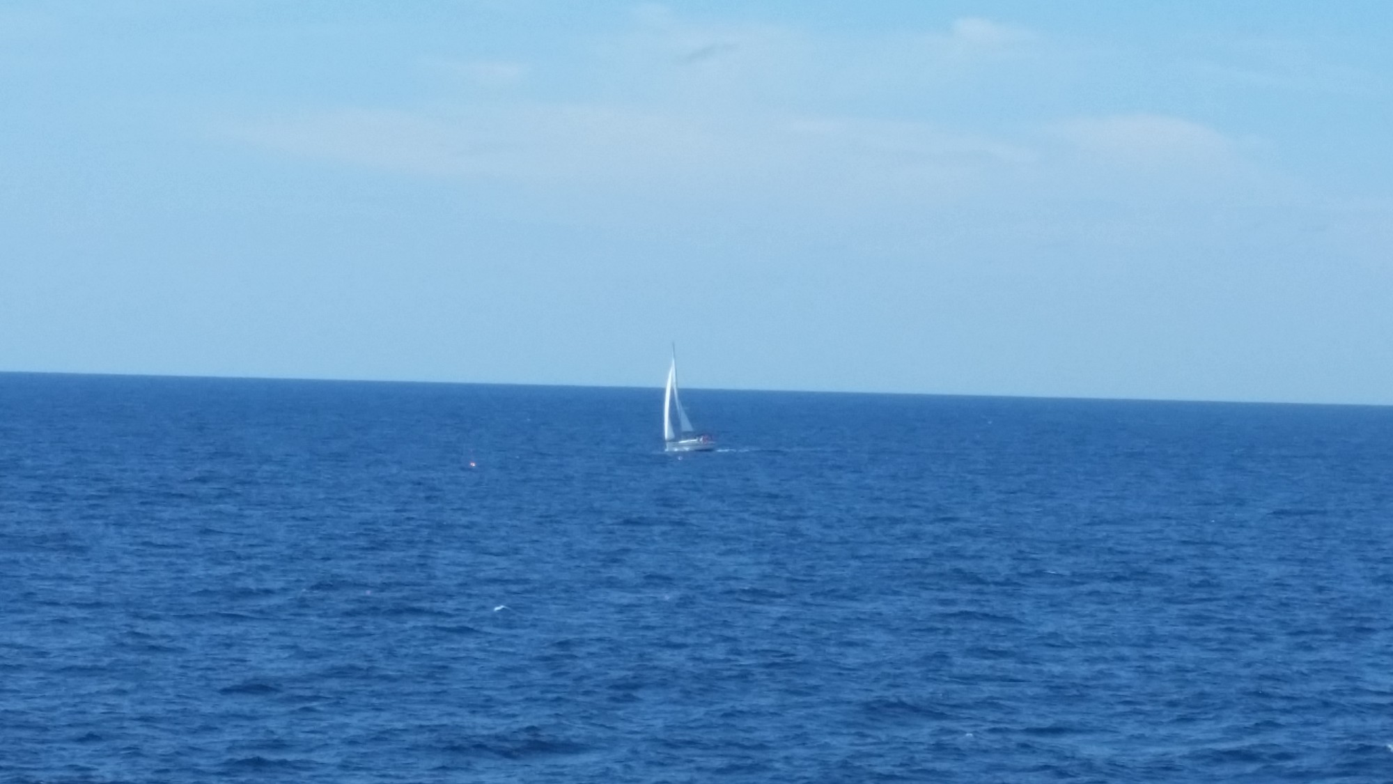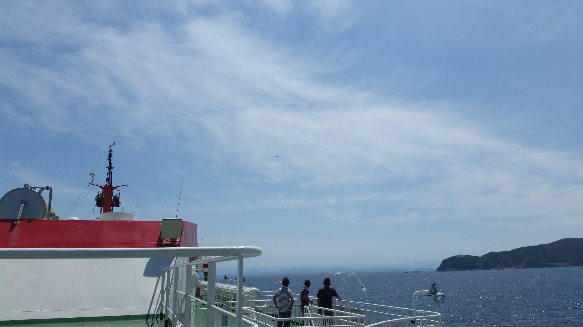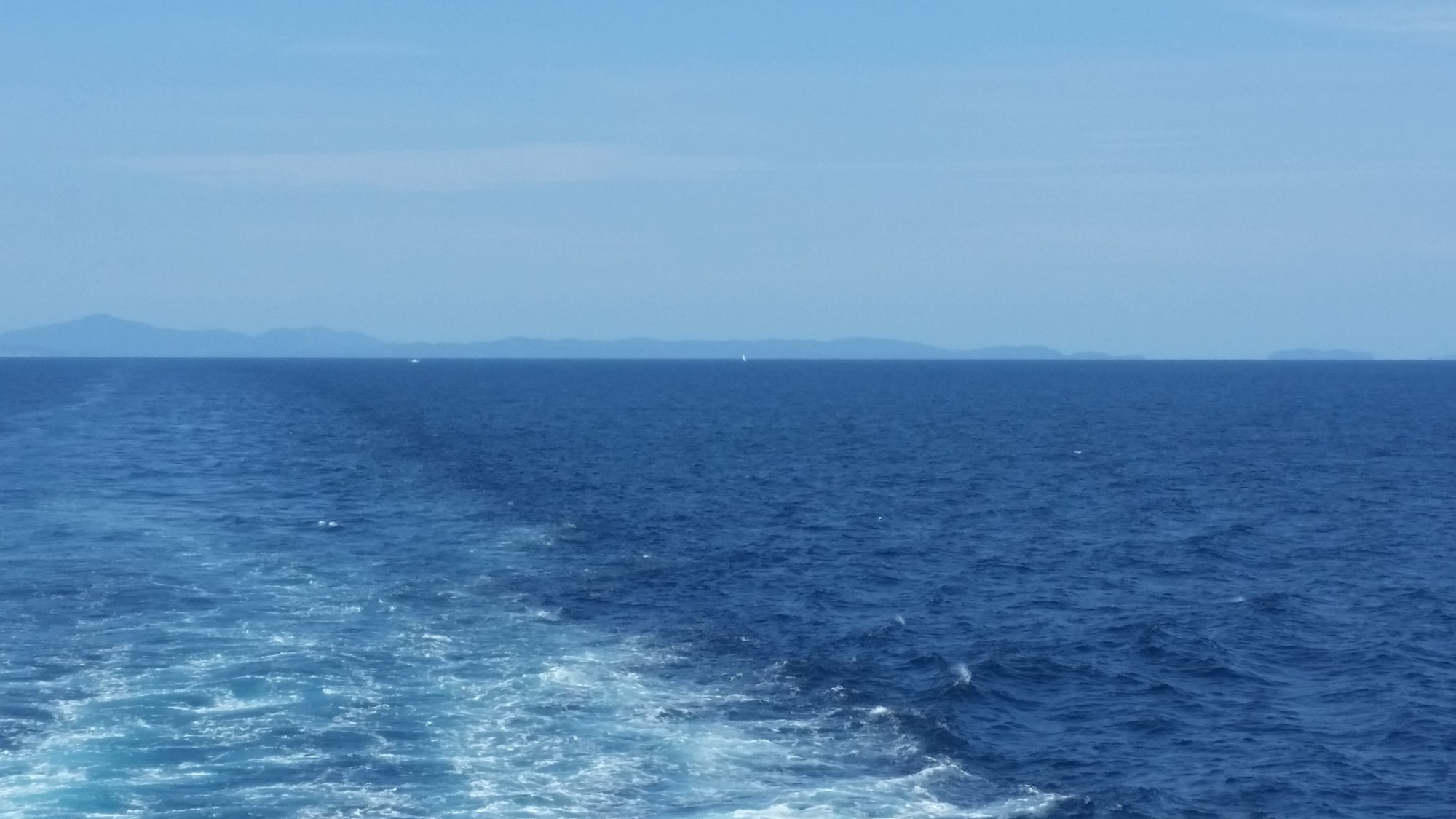 27日(日)今日は本土に帰る日で、朝食そして境港行きのフェリーに乗船、船内でゆっくりしていたが、早く出発したヨットの動向が気になりデッキに上がり前方を見つめているとヨットが何隻かはしっていた。
