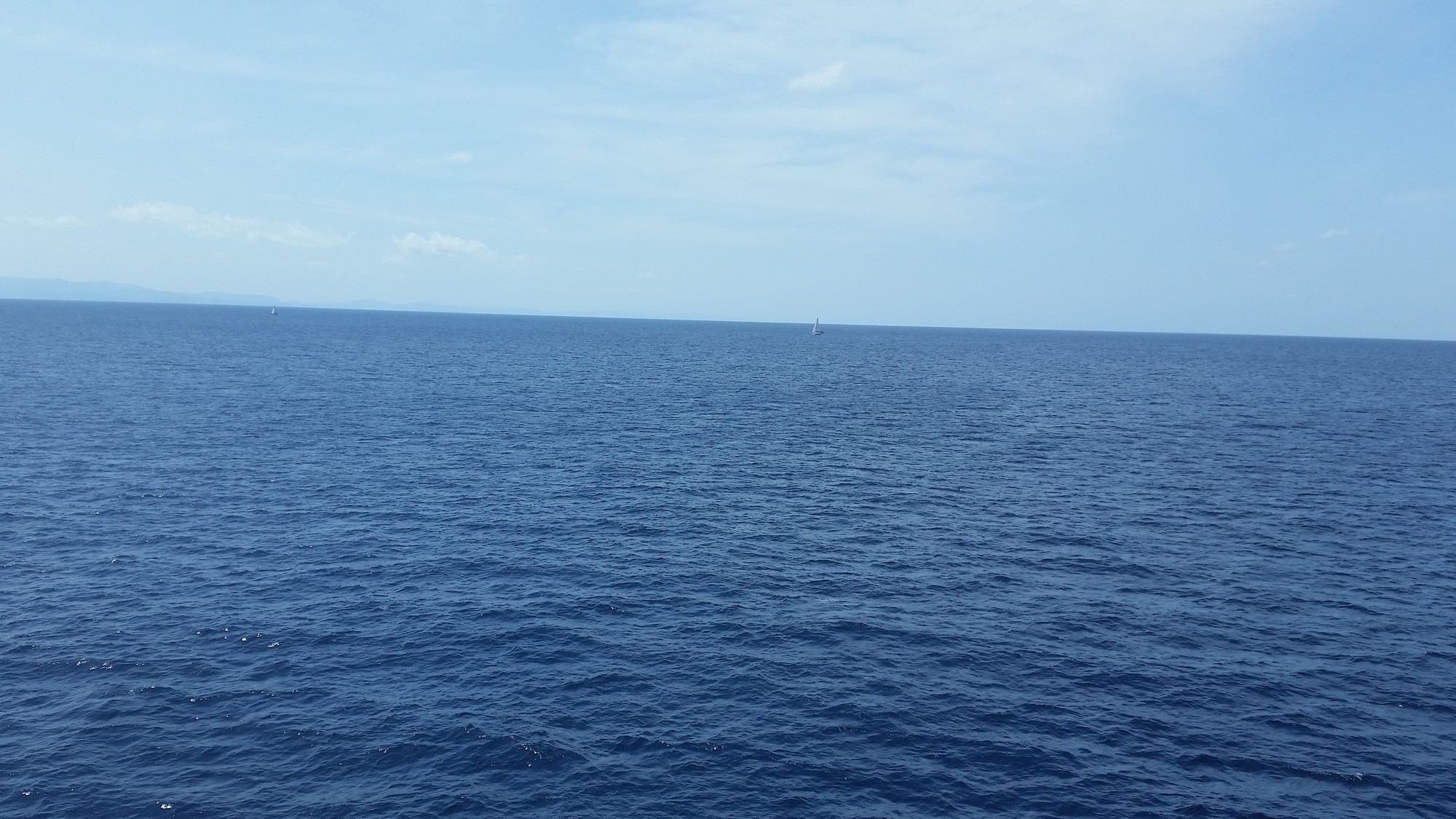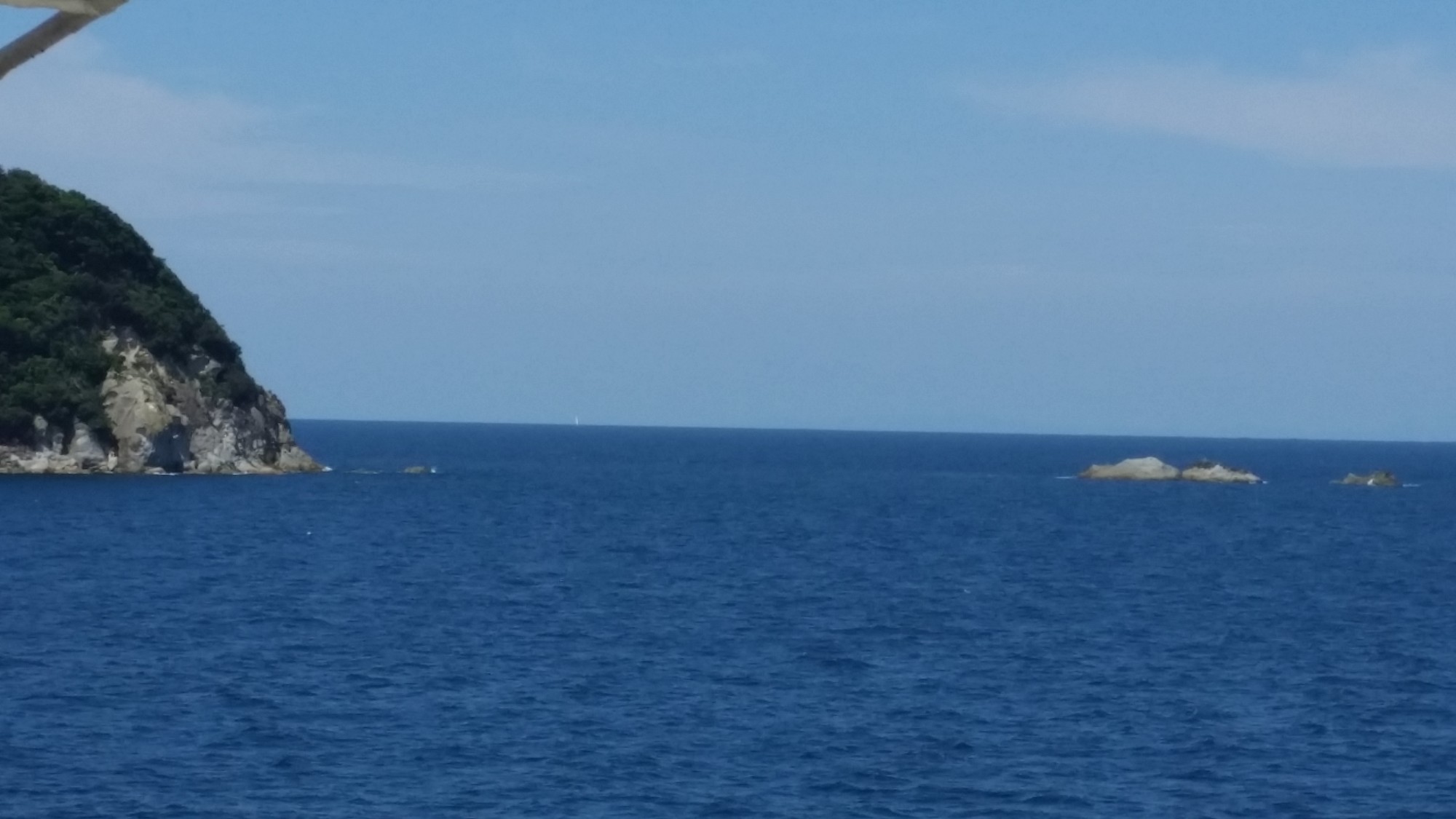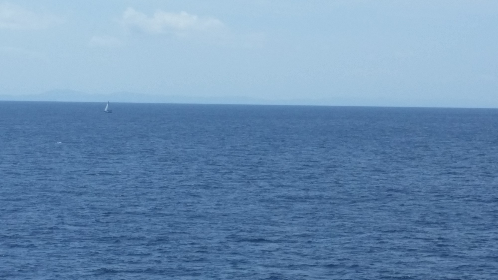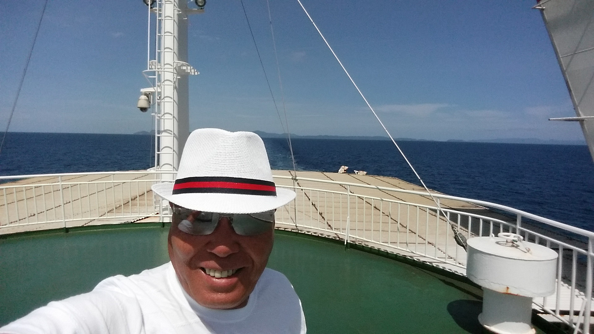 27日(日)今日は本土に帰る日で、朝食そして境港行きのフェリーに乗船、船内でゆっくりしていたが、早く出発したヨットの動向が気になりデッキに上がり前方を見つめているとヨットが何隻かはしっていた。