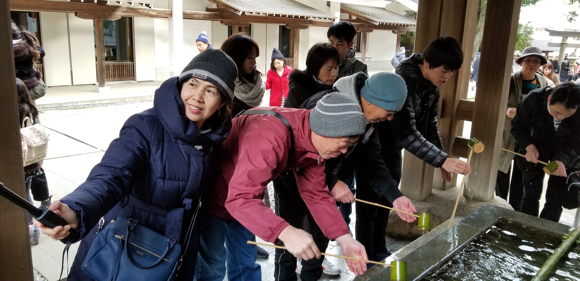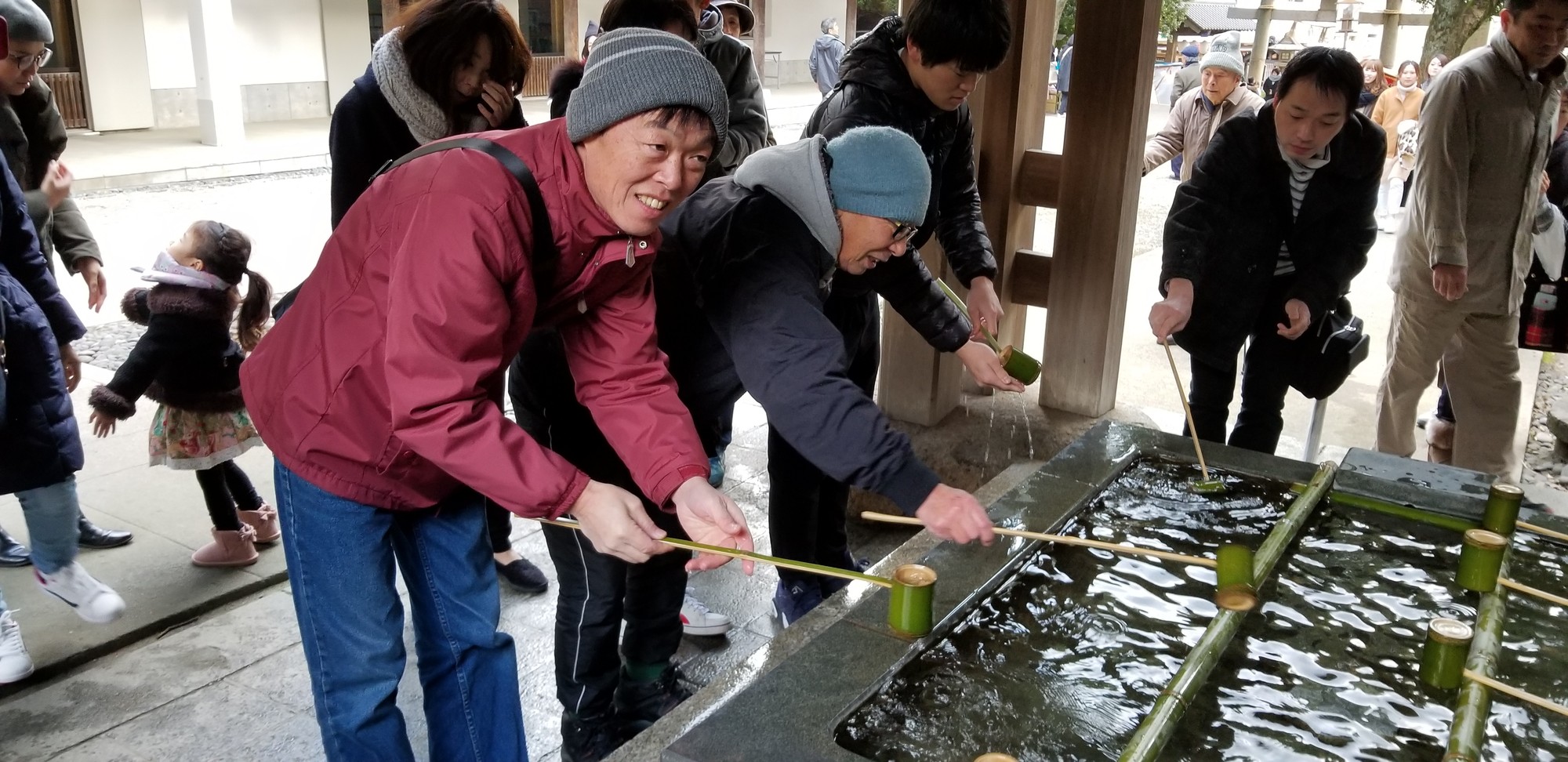 有難いお神酒を頂き、今年も良い年で有ります様にお祈りし、初詣を終え全員福間館に集結。