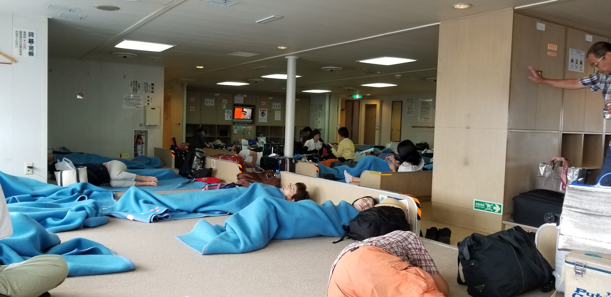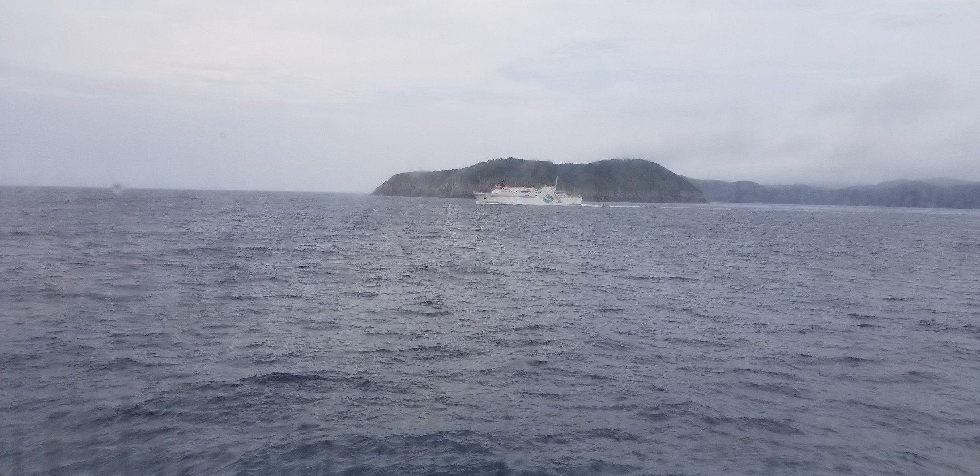 非常に残念でしたが、既にシーサイドホテル鶴丸に予約を入れていたので、急遽カーフェリ『くにが』で行く事にしました。