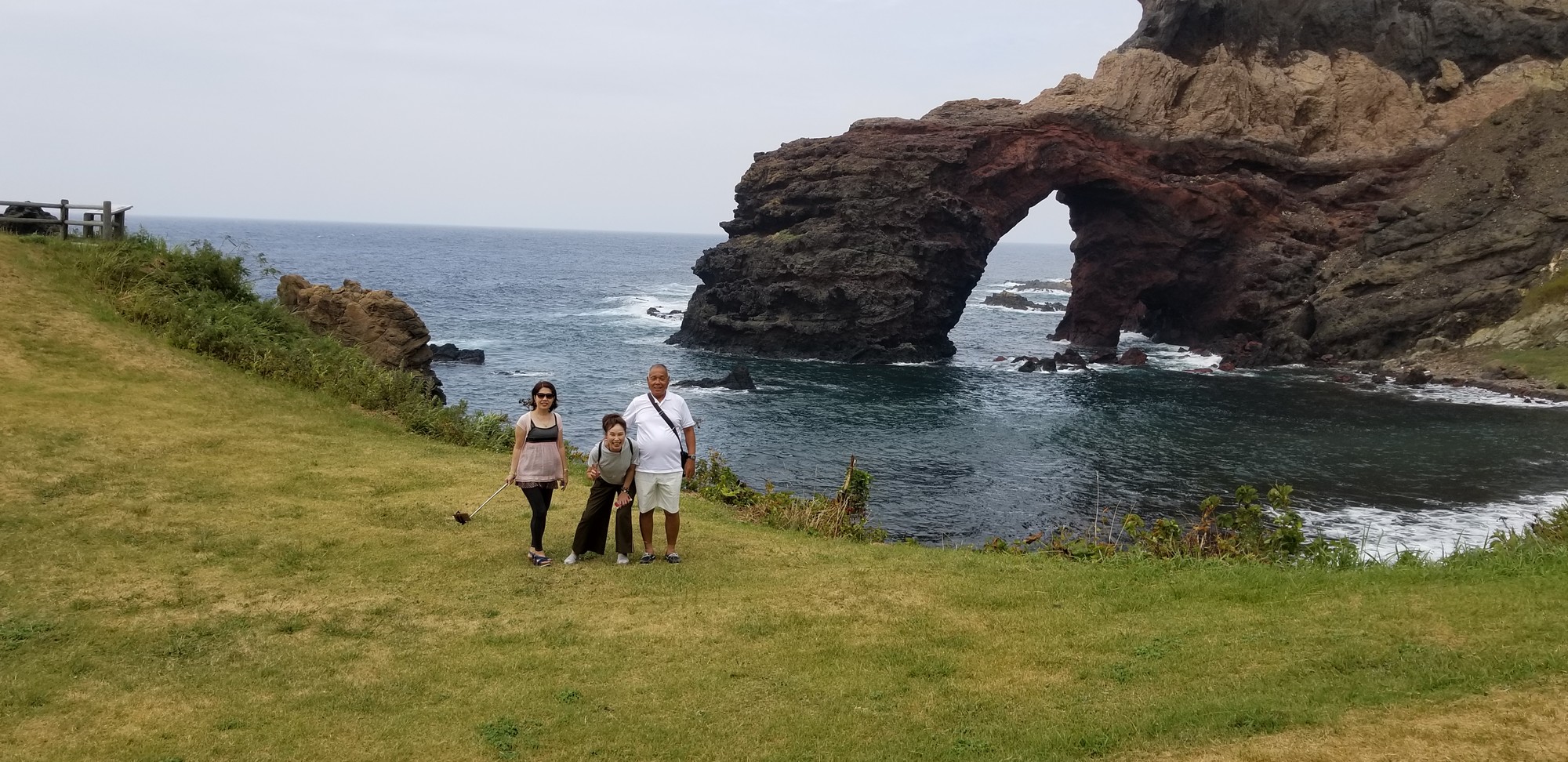 到着後昼食を頂、ホテルの自家用車をお借りして、国賀海岸辺りを散策し、焼火神社にお参り。航海の安全祈願と無病息災も祈願!