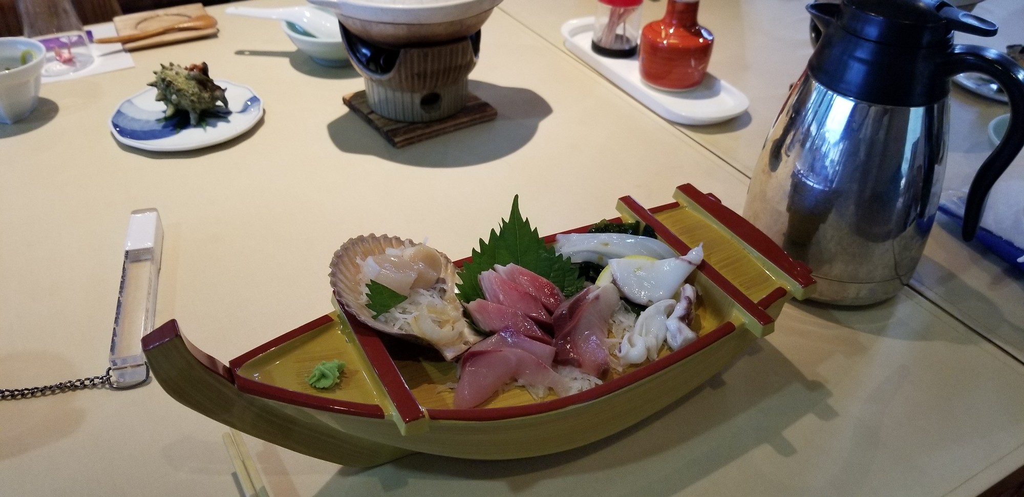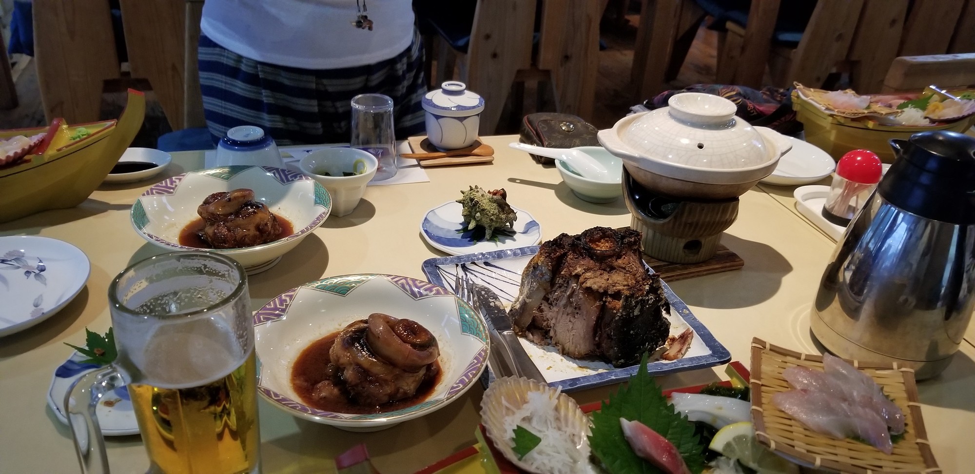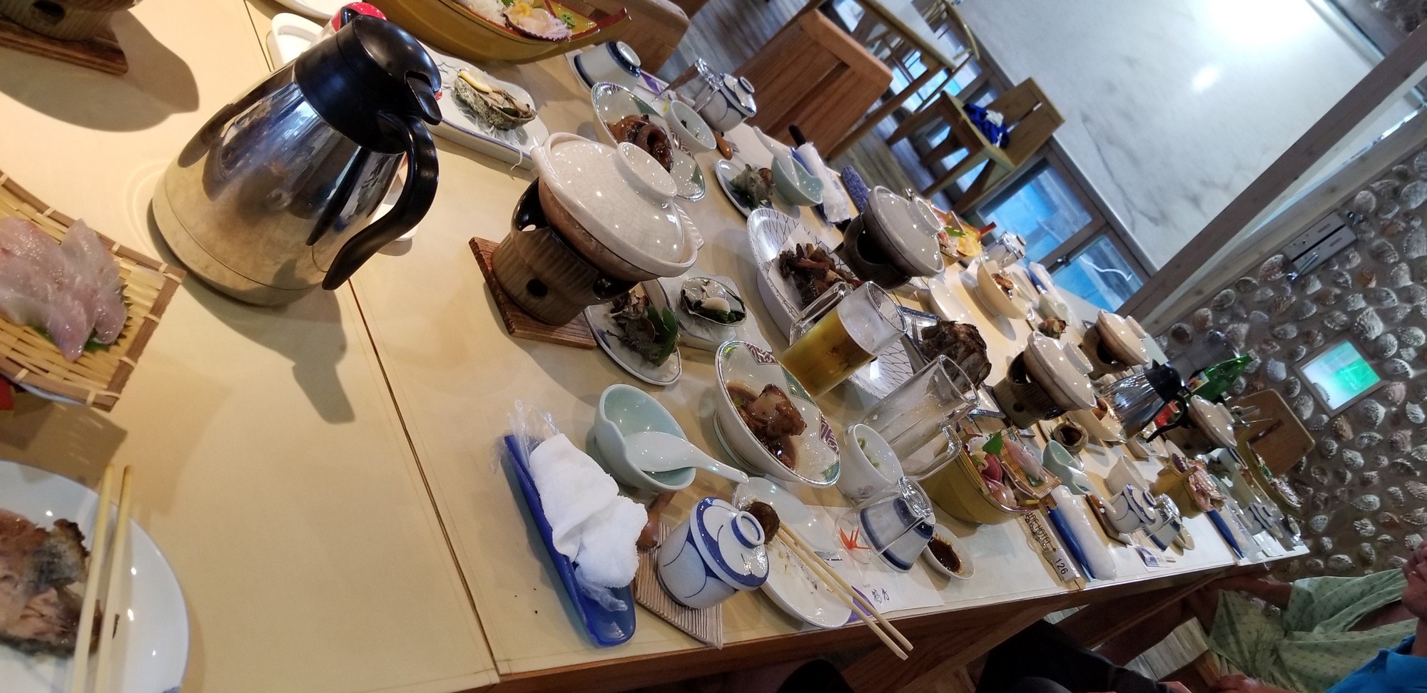 入浴後、夜は恒例の鶴丸スペシャルのご馳走で、乾杯!