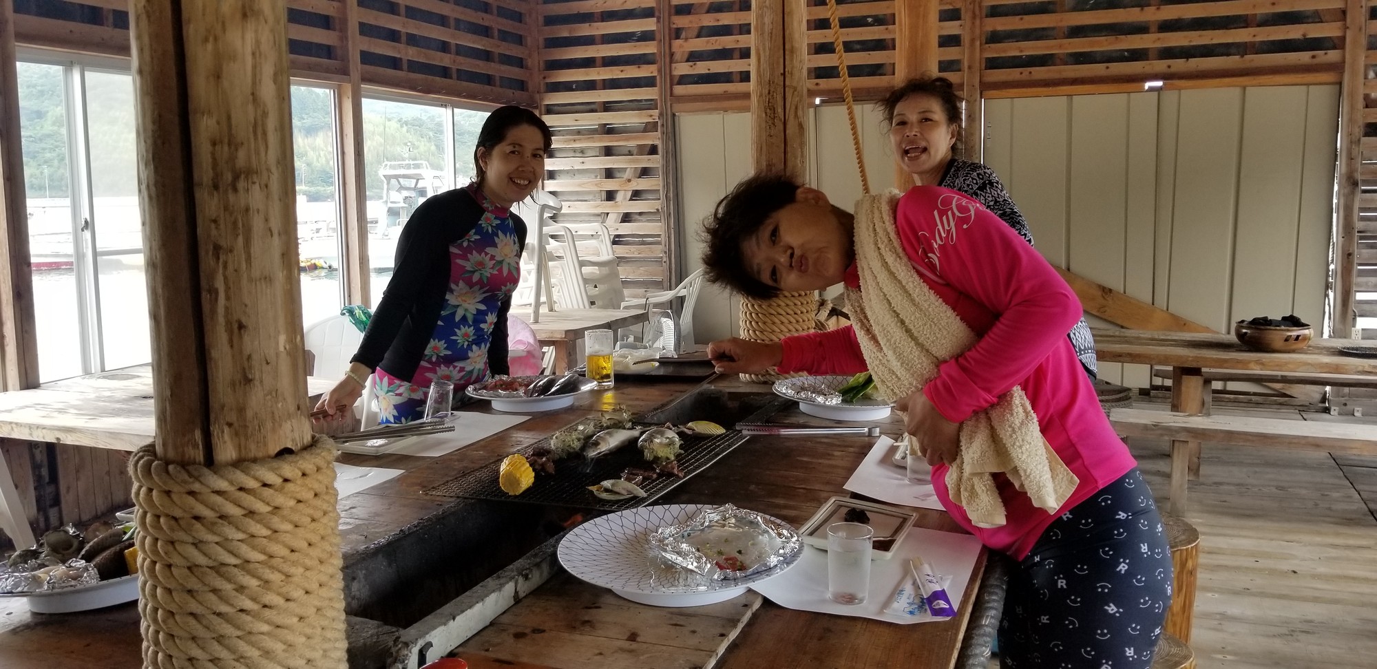 その他に、ドリームのオーナー、ロハスのオーナー夫婦、それにゲストの女子2名の合計7名で『くにが』に乗船!