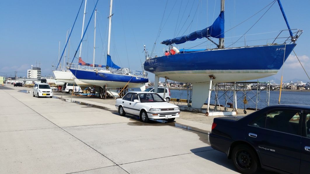 船台を配置し、錦海C.Cメンバーと各艇のクルーとで無事に上架した。
