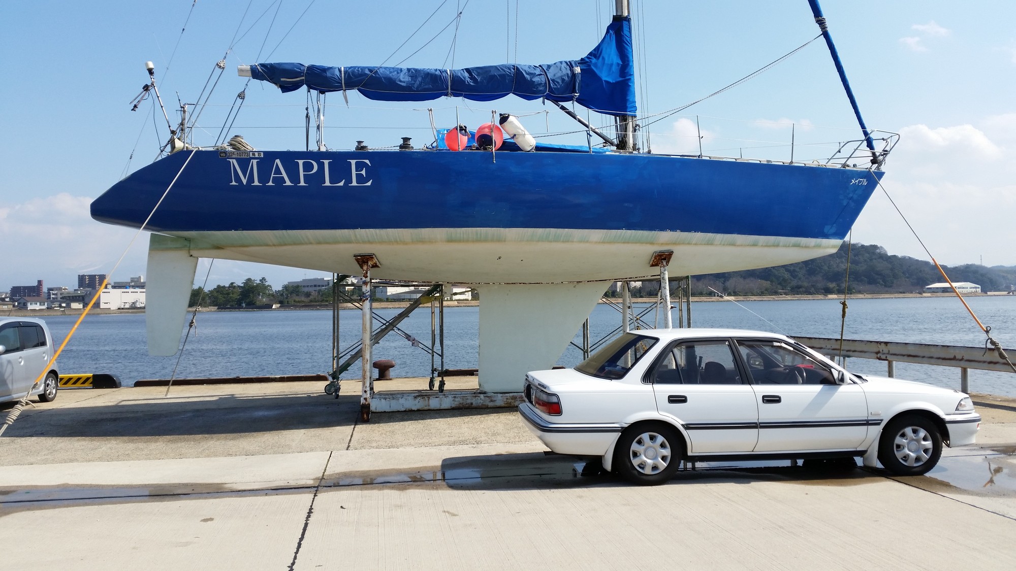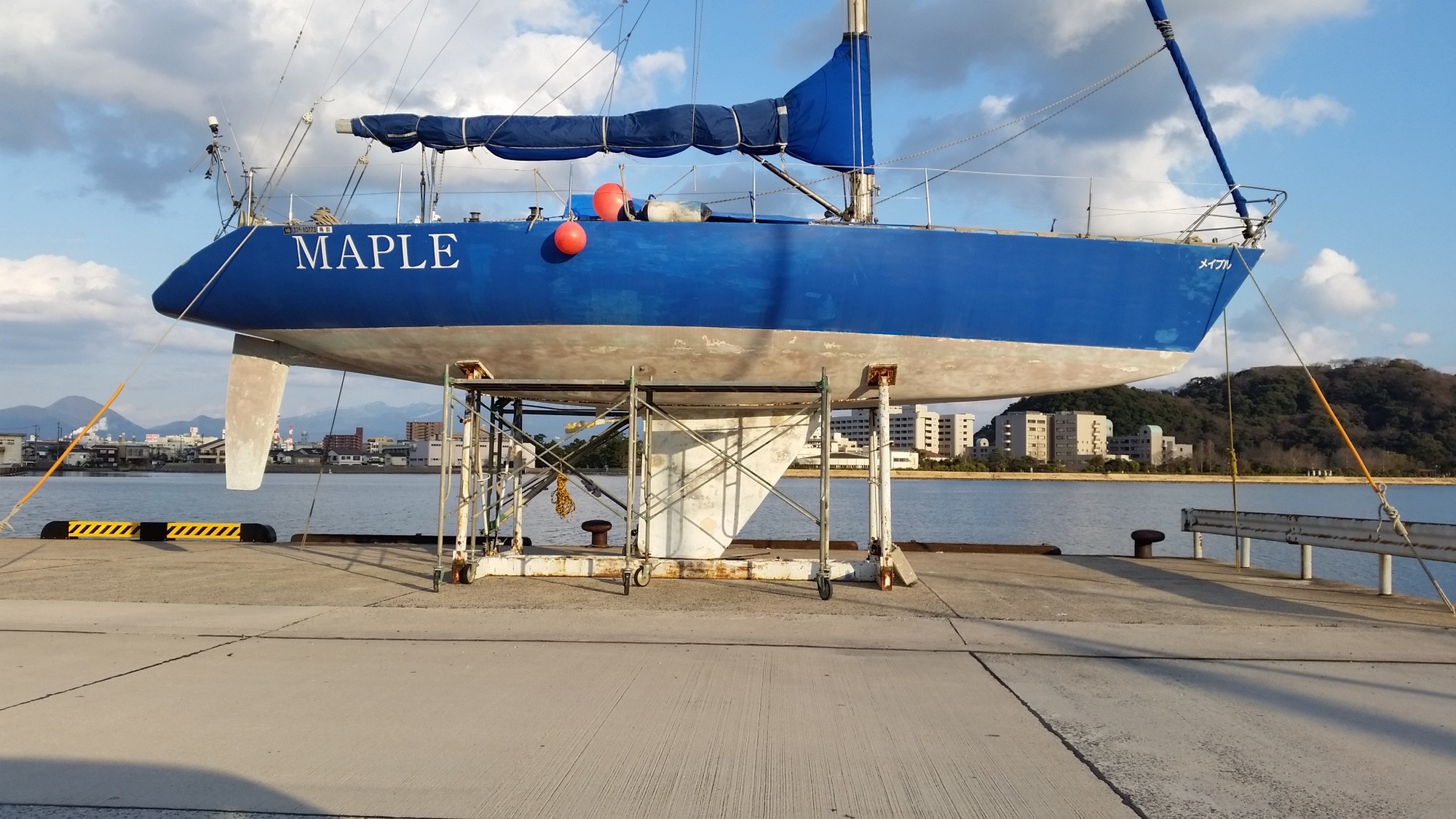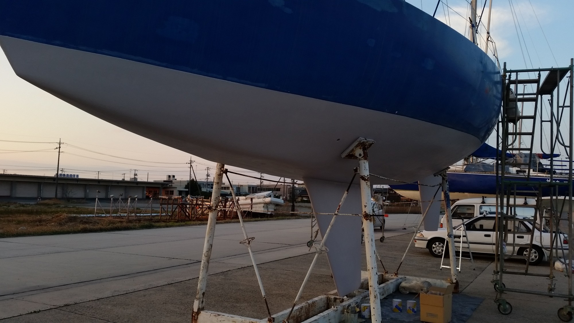 士良さんがヨットで安来の『鳥辰』に行こう!と言う事になって、急いで一回目のペラクリーンを塗布し、2回目は31日に塗布する予定にして、早々に仕上げた。