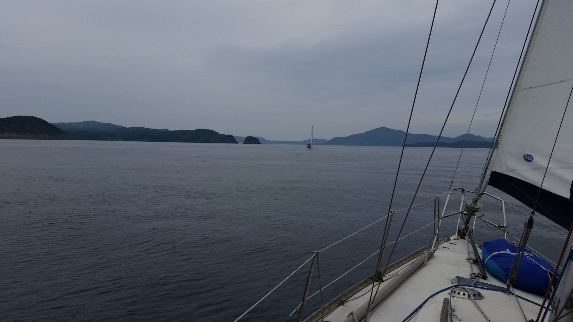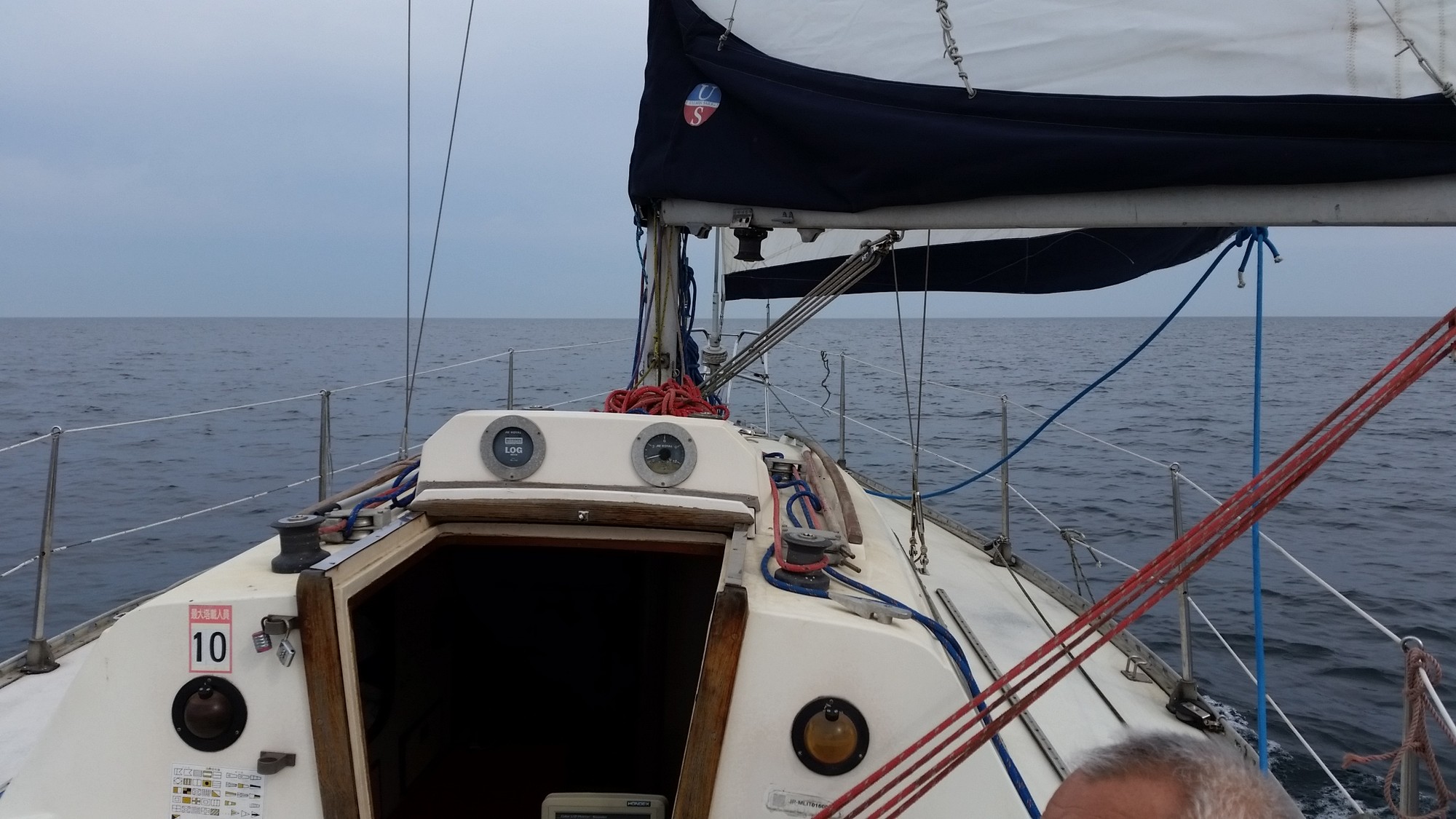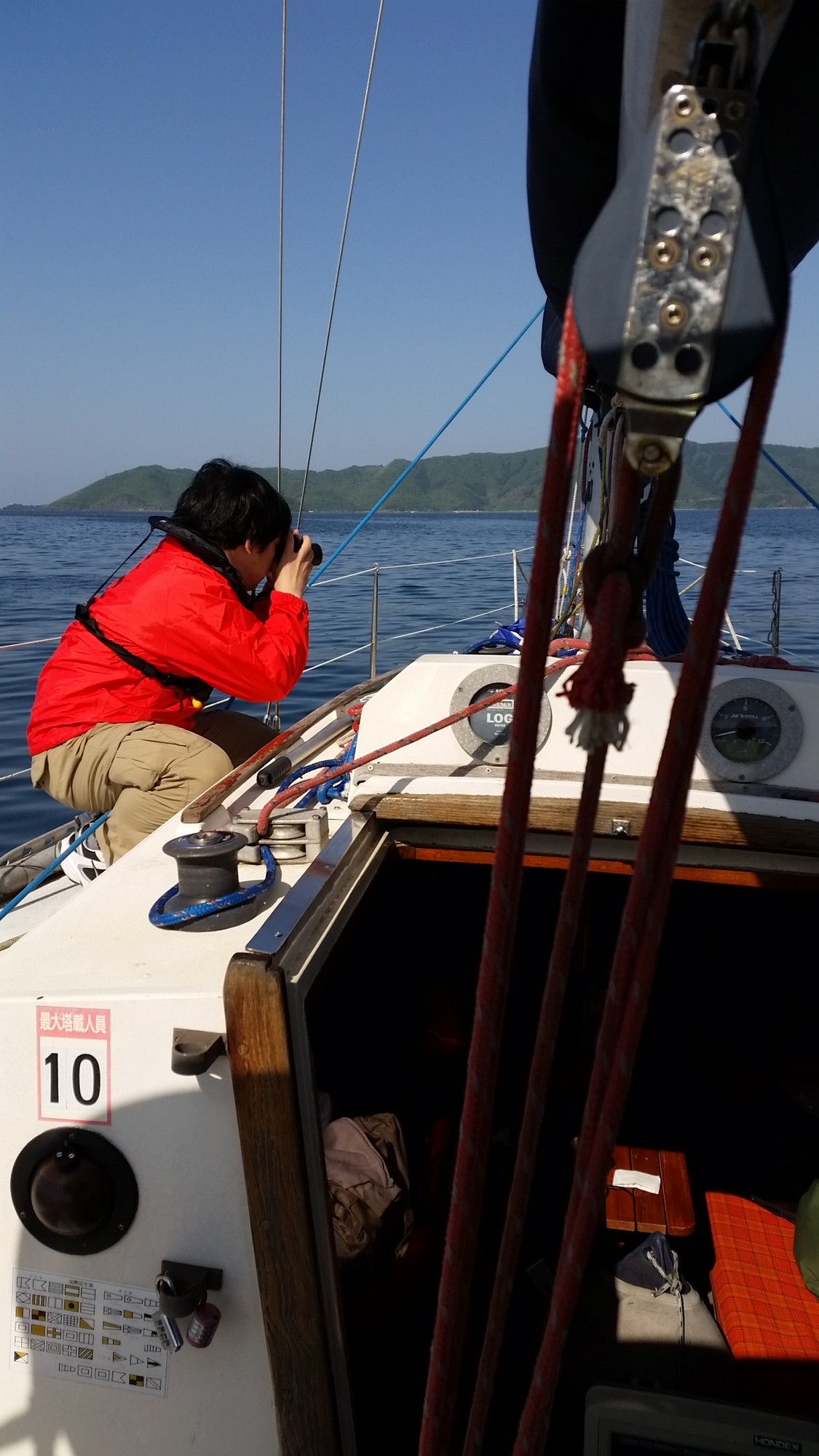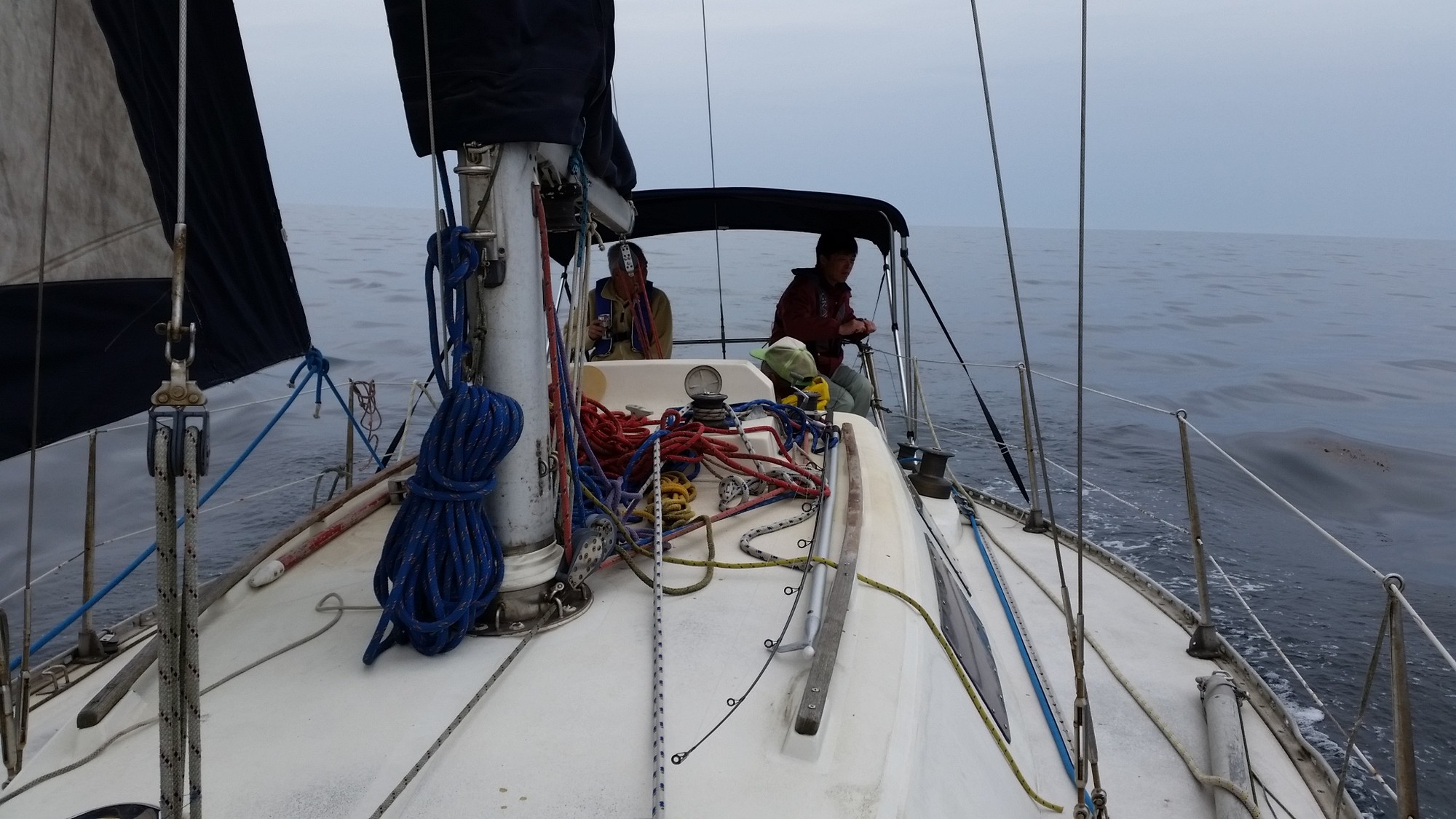 出港後は早朝でもあり風が余り吹いていません。メインと機走で一路隠岐ノ島へ!途中から少し風も上がったのでジブセールを展開!更に少し後ろに回ったので、ジェネカーを展開!