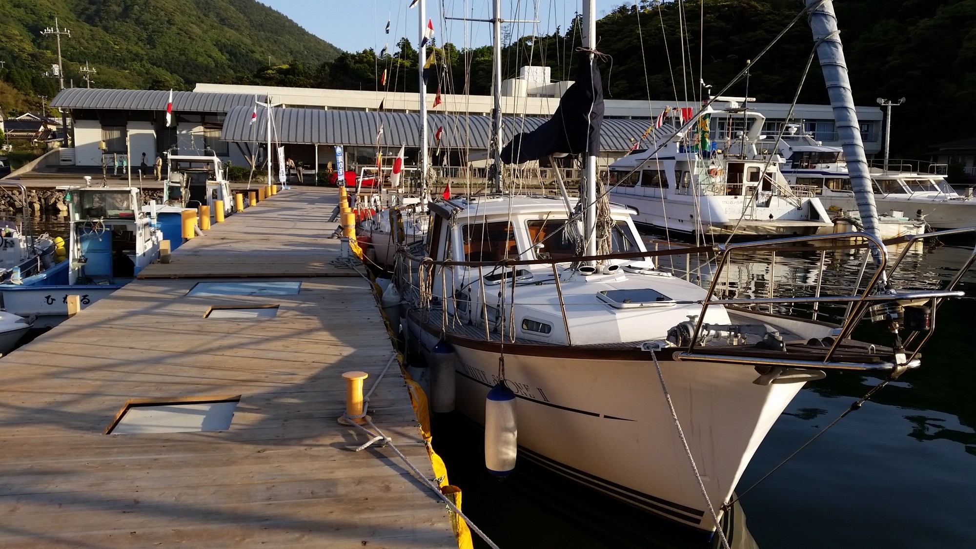 午後からは雨も上がり4日に境港を出港したヨットも菱浦港に集まって来た!