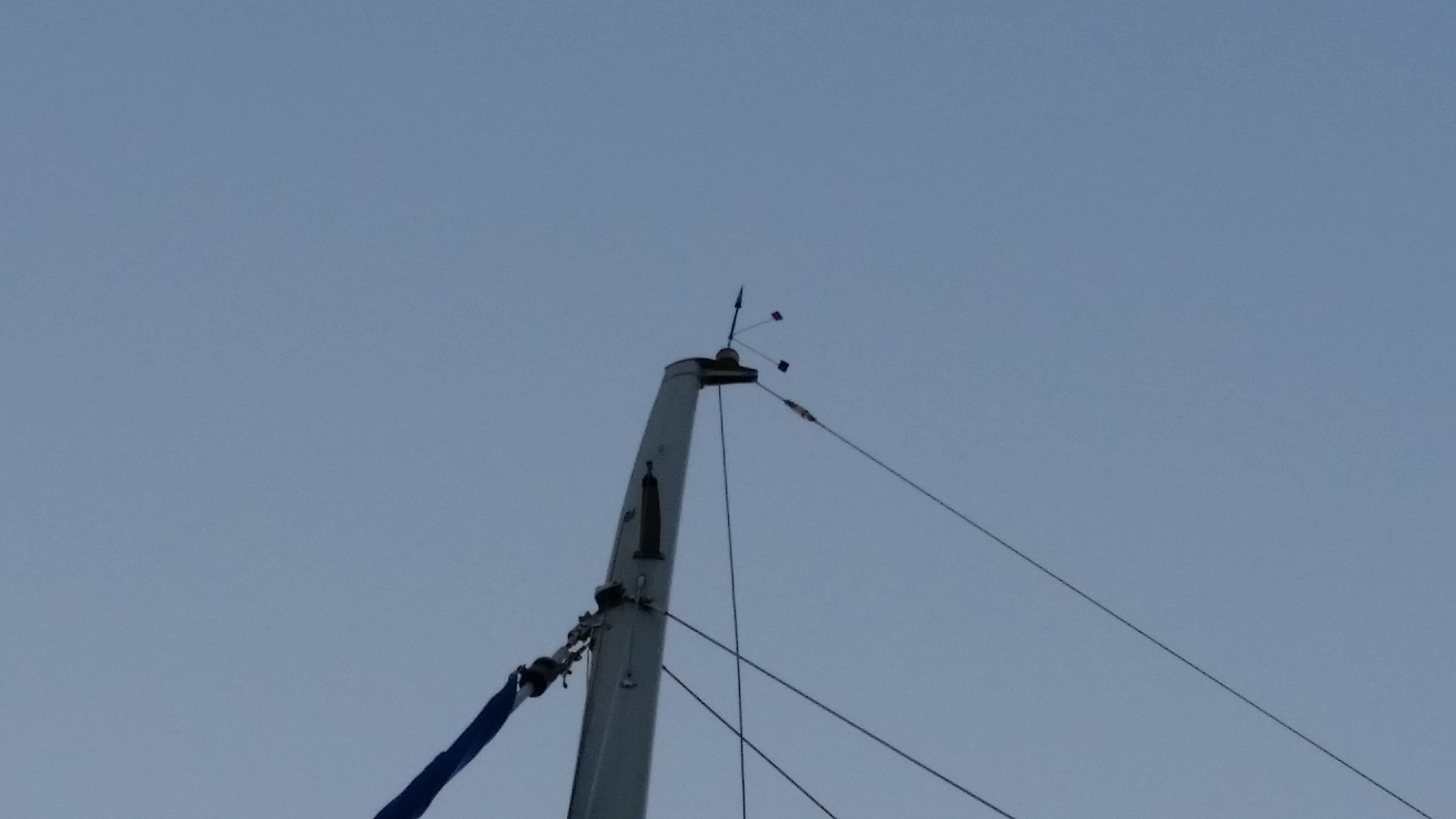 これの残骸の取り外しをしてもらい、次にバックステー兼HFアンテナのクレビスピンの抜け止めの割りピンを外してもらい、無事取り外し完了!