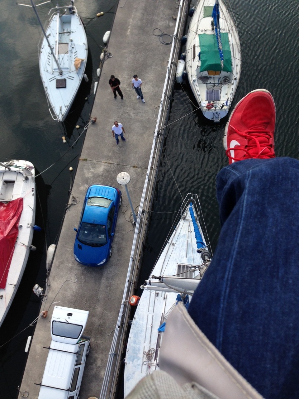 今日は朝からクルーの皆とで、バックステーの取り外しに協力をしてもらいました。